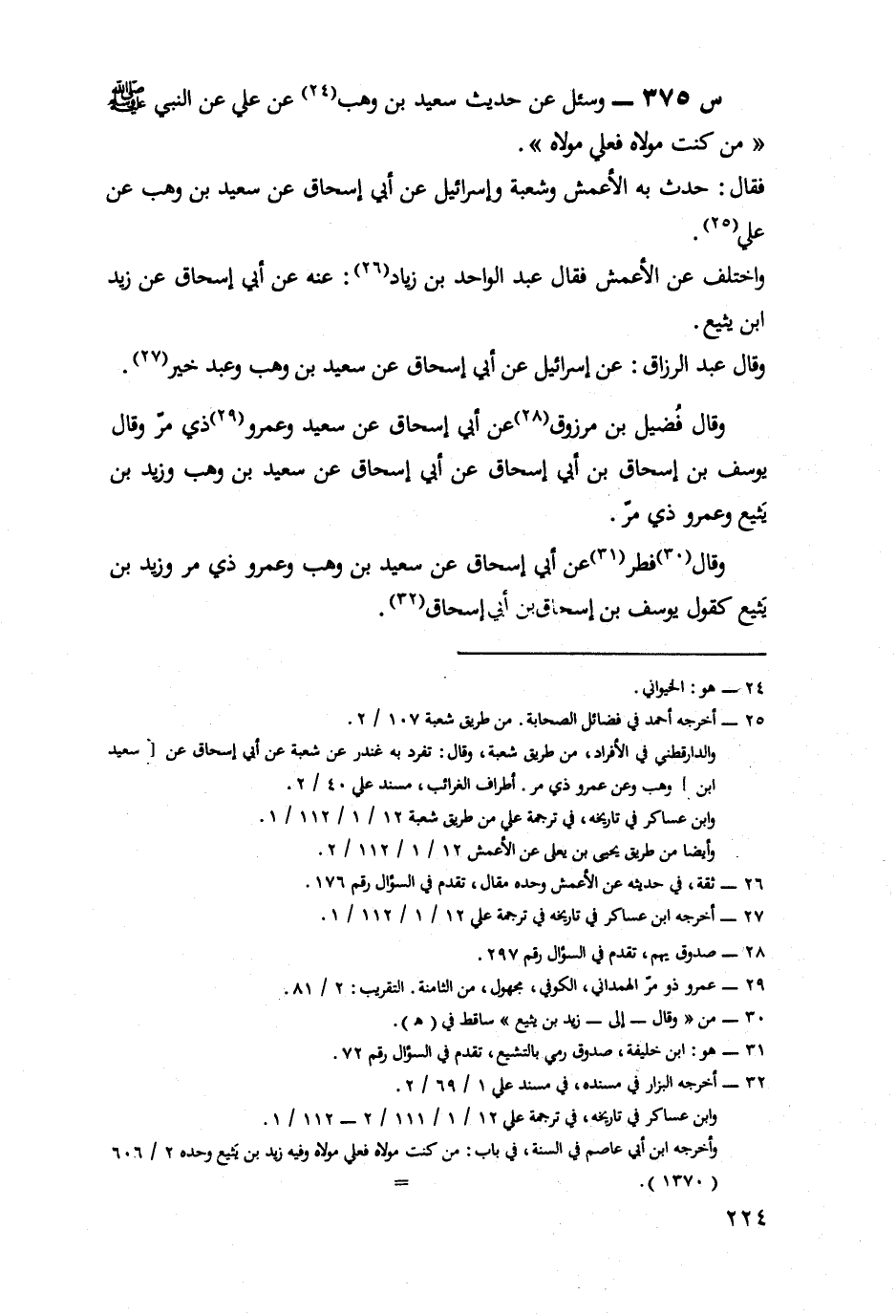 375- وَسُئِلَ عَنْ حَدِيثِ سَعِيدِ بْنِ وَهْبٍ، عَنْ عَلِيٍّ، عَنِ النَّبِيِّ صَلَّى اللَّهُ عَلَيْهِ وسلم: مَنْ كُنْتُ مَوْلَاهُ فَعَلَيَّ مَوْلَاهُ.