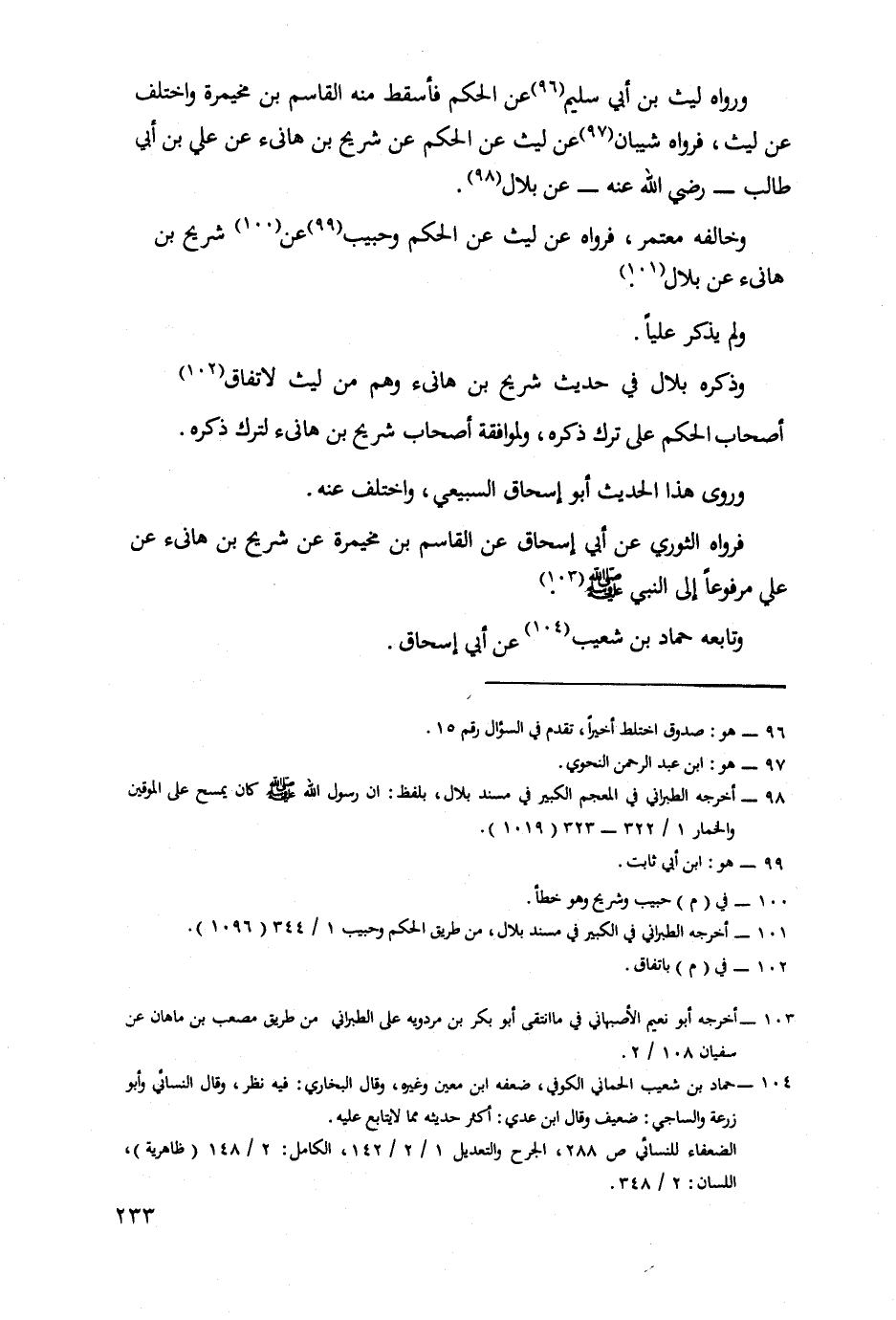 وَذَكَرَهُ بِلَالٌ فِي حَدِيثِ شُرَيْحِ بْنِ هَانِئٍ، وَهْمٌ مِنْ لَيْثٍ لِاتِّفَاقِ أَصْحَابِ الْحَكَمِ عَلَى تَرْكِ ذِكْرِهِ، وَلِمُوَافَقَةِ أَصْحَابِ شُرَيْحِ بْنِ هَانِئٍ لِتَرْكِ ذِكْرِهِ.