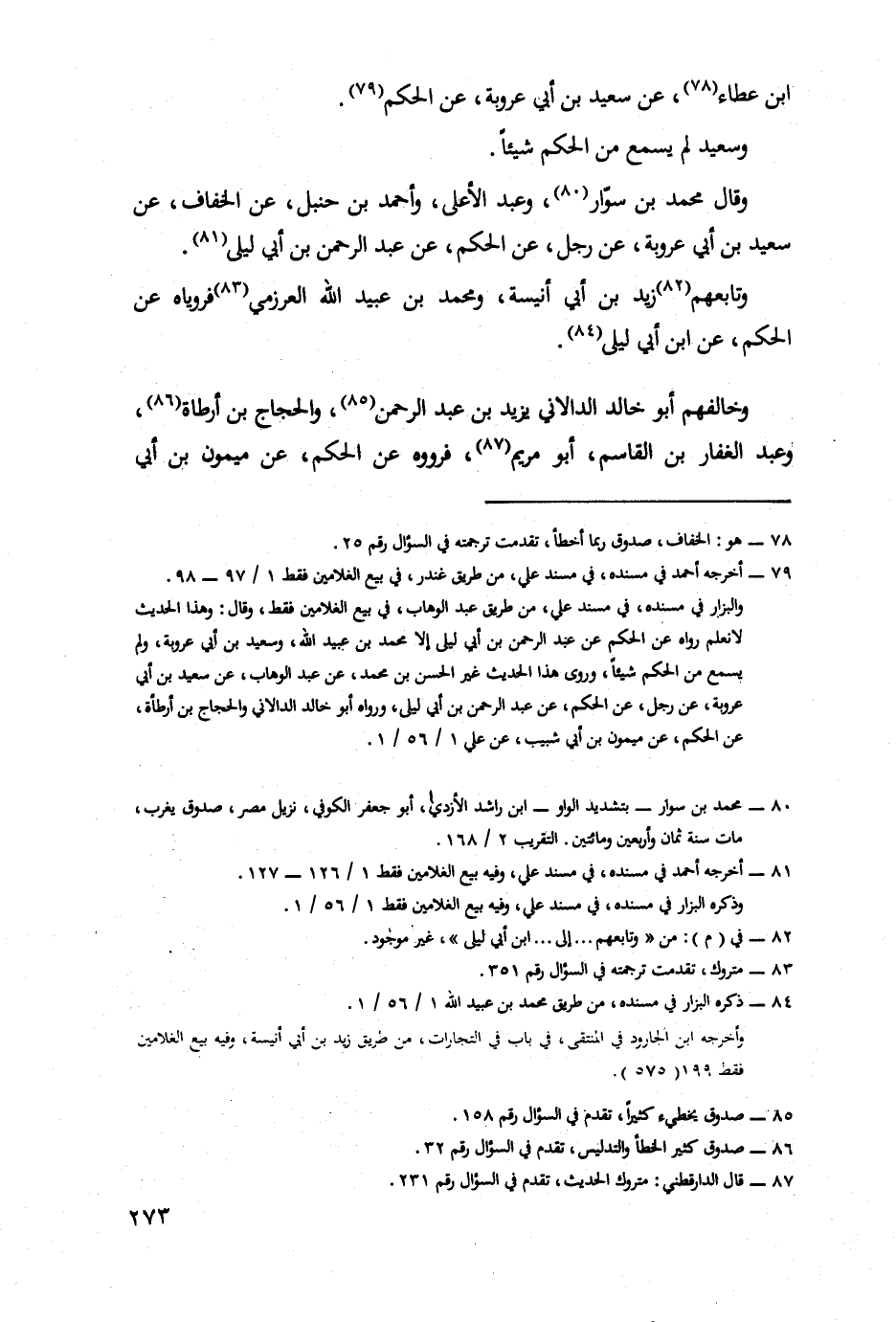 وَقَالَ مُحَمَّدُ بْنُ سَوَّارٍ، وَعَبْدُ الْأَعْلَى، وَأَحْمَدُ بْنُ حَنْبَلٍ، عَنِ الْخَفَّافِ، عَنْ سَعِيدِ بْنِ أَبِي عَرُوبَةَ، عَنْ رَجُلٍ، عَنِ الْحَكَمِ، عَنْ عَبْدِ الرَّحْمَنِ بْنِ أَبِي لَيْلَى.