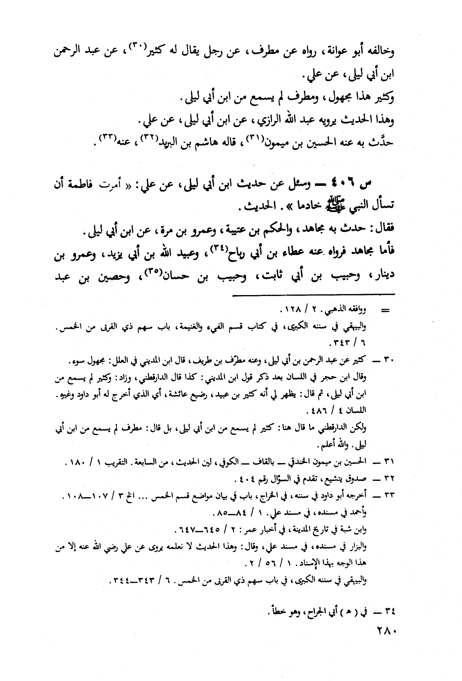 406- وَسُئِلَ عَنْ حَدِيثِ ابْنِ أَبِي لَيْلَى، عَنْ عَلِيٍّ أَمَرْتُ فَاطِمَةَ أَنْ تَسْأَلَ النَّبِيَّ صَلَّى اللَّهُ عَلَيْهِ وَسَلَّمَ خَادِمًا الْحَدِيثَ.