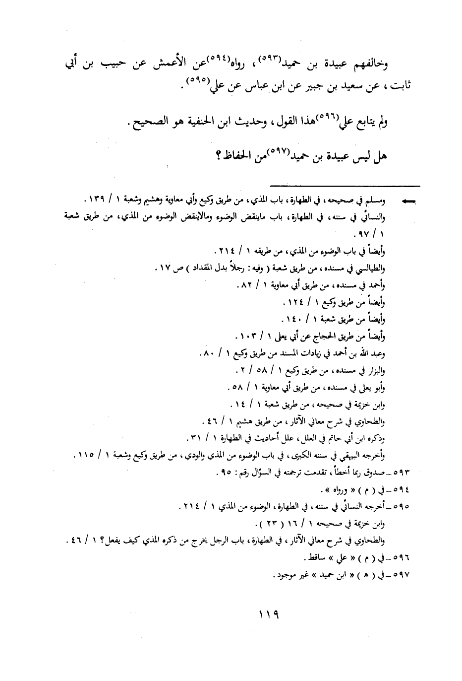 وَخَالَفَهُمْ عُبَيْدَةُ بْنُ حُمَيْدٍ، رَوَاهُ عَنِ الْأَعْمَشِ، عَنْ حَبِيبِ بْنِ أَبِي ثَابِتٍ، عَنْ سَعِيدِ بْنِ جُبَيْرٍ، عَنِ ابْنِ عَبَّاسٍ، عَنْ عَلِيٍّ.