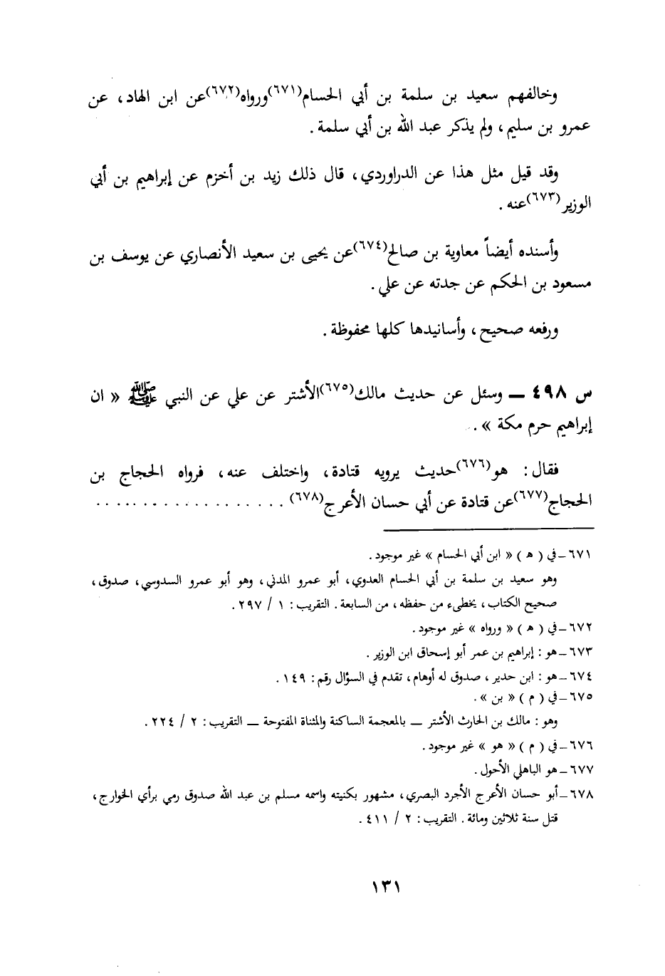 468- وَسُئِلَ عَنْ حَدِيثِ مَالِكٍ الْأَشْتَرِ، عَنْ عَلِيٍّ، عَنِ النَّبِيِّ صَلَّى اللَّهُ عَلَيْهِ وسلم؛ أن إِبْرَاهِيمَ حَرَّمَ مَكَّةَ.