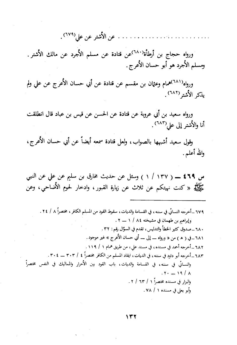 469- وَسُئِلَ عَنْ حَدِيثِ مُخَارِقِ بْنِ سُلَيْمٍ، عَنْ عَلِيٍّ، عَنِ النَّبِيِّ صَلَّى اللَّهُ عَلَيْهِ وسلم: كُنْتُ نَهَيْتُكُمْ عَنْ ثَلَاثٍ: عَنْ زِيَارَةِ الْقُبُورِ، وَادِّخَارِ لُحُومِ الْأَضَاحِي، وَعَنِ الْأَوْعِيَةِ ... الْحَدِيثَ.