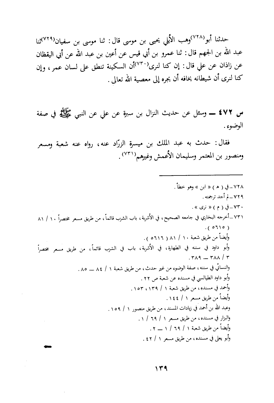 472- وسئل عن حديث النزال بن سبرة، عَنْ عَلِيٍّ، عَنِ النَّبِيِّ صَلَّى اللَّهُ عَلَيْهِ وسلم فِي صِفَةِ الْوُضُوءِ.