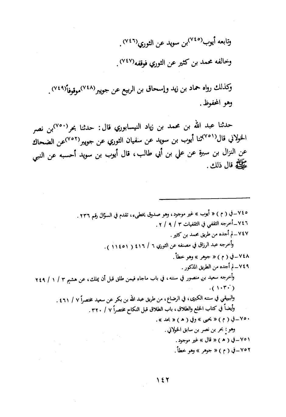 حَدَّثَنَا عَبْدُ اللَّهِ بْنُ مُحَمَّدِ بْنِ زِيَادٍ النَّيْسَابُورِيُّ، قَالَ: حدثنا بحر بن نصر الخولاني، قال: حدثنا أَيُّوبُ بْنُ سُوَيْدٍ، عَنْ سُفْيَانَ الثَّوْرِيِّ، عَنْ جُوَيْبِرٍ، عَنِ الضَّحَّاكِ، عَنِ النَّزَّالِ بْنِ سَبْرَةَ، عَنْ عَلِيِّ بْنِ أَبِي طَالِبٍ، قَالَ أَيُّوبُ بْنُ سُوَيْدٍ أَحْسَبُهُ عَنِ النَّبِيِّ صَلَّى اللَّهُ عَلَيْهِ وَسَلَّمَ قَالَ ذَلِكَ.