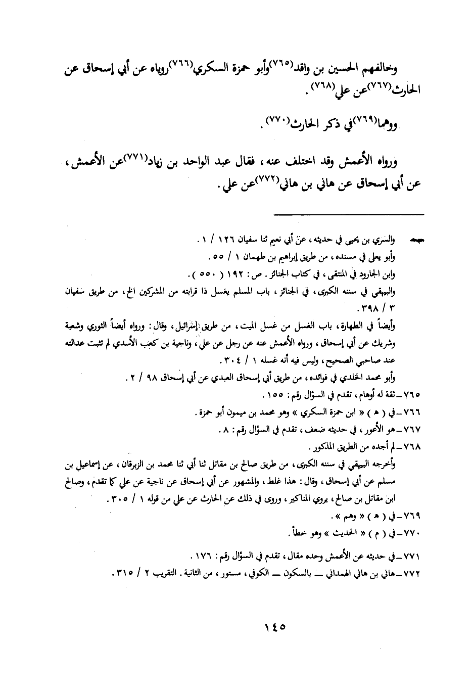 وَخَالَفَهُمُ الْحُسَيْنُ بْنُ وَاقِدٍ، وَأَبُو حَمْزَةَ السُّكِّرِيُّ، رَوَيَاهُ عَنْ أَبِي إِسْحَاقَ، عَنِ الْحَارِثِ، عَنْ عَلِيٍّ.