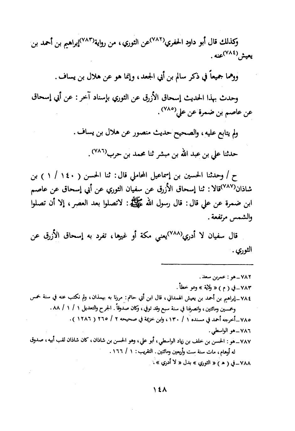وَحَدَّثَ بِهَذَا الْحَدِيثَ إِسْحَاقُ الْأَزْرَقُ، عَنِ الثَّوْرِيِّ بِإِسْنَادٍ آخَرَ: عَنْ أَبِي إِسْحَاقَ، عَنْ عَاصِمِ بْنِ ضَمْرَةَ، عَنْ عَلِيٍّ.
