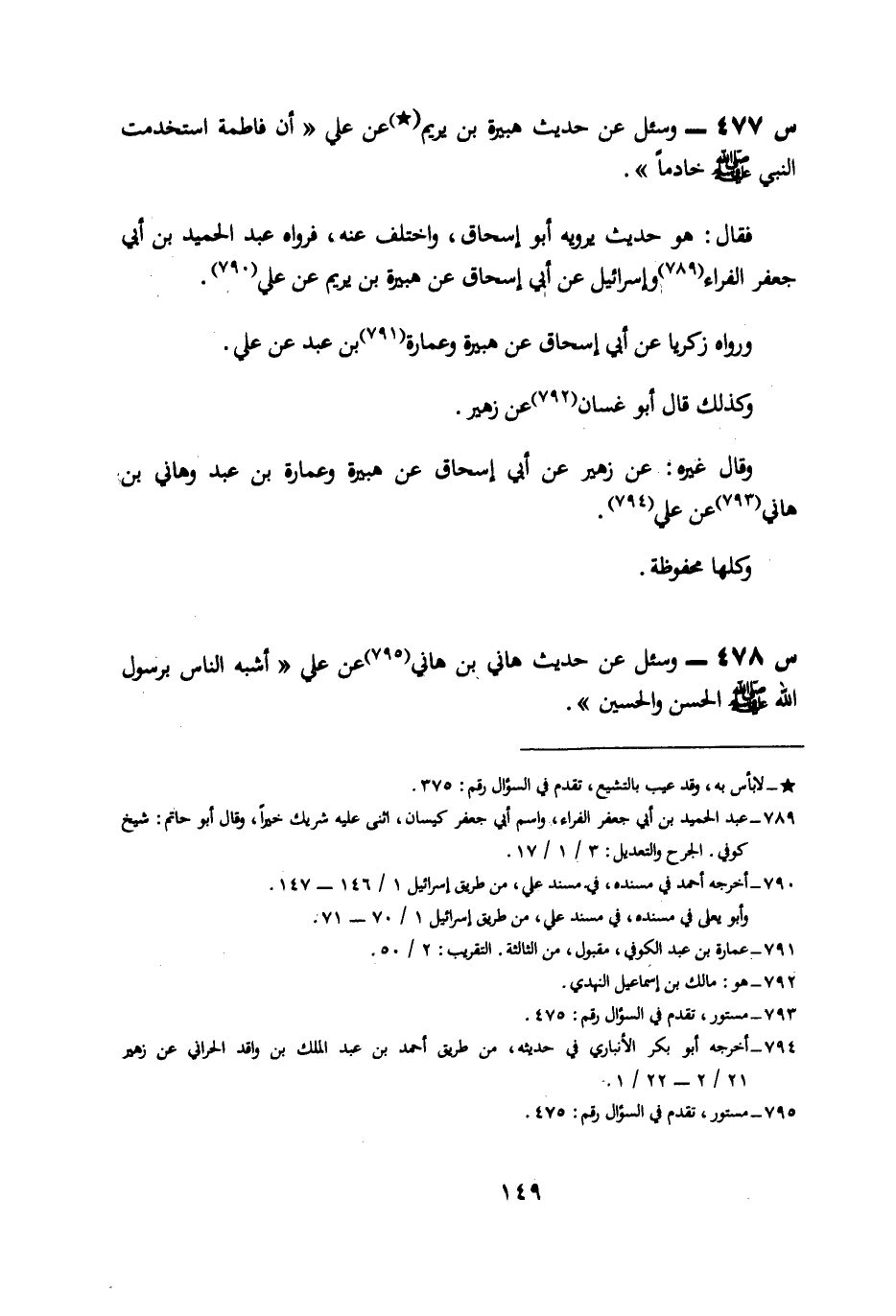 477- وَسُئِلَ عَنْ حَدِيثِ هُبَيْرَةَ بْنِ يَرِيمَ، عَنْ عَلِيٍّ أَنَّ فَاطِمَةَ اسْتَخْدَمَتِ النَّبِيَّ صَلَّى اللَّهُ عَلَيْهِ وَسَلَّمَ خَادِمًا.