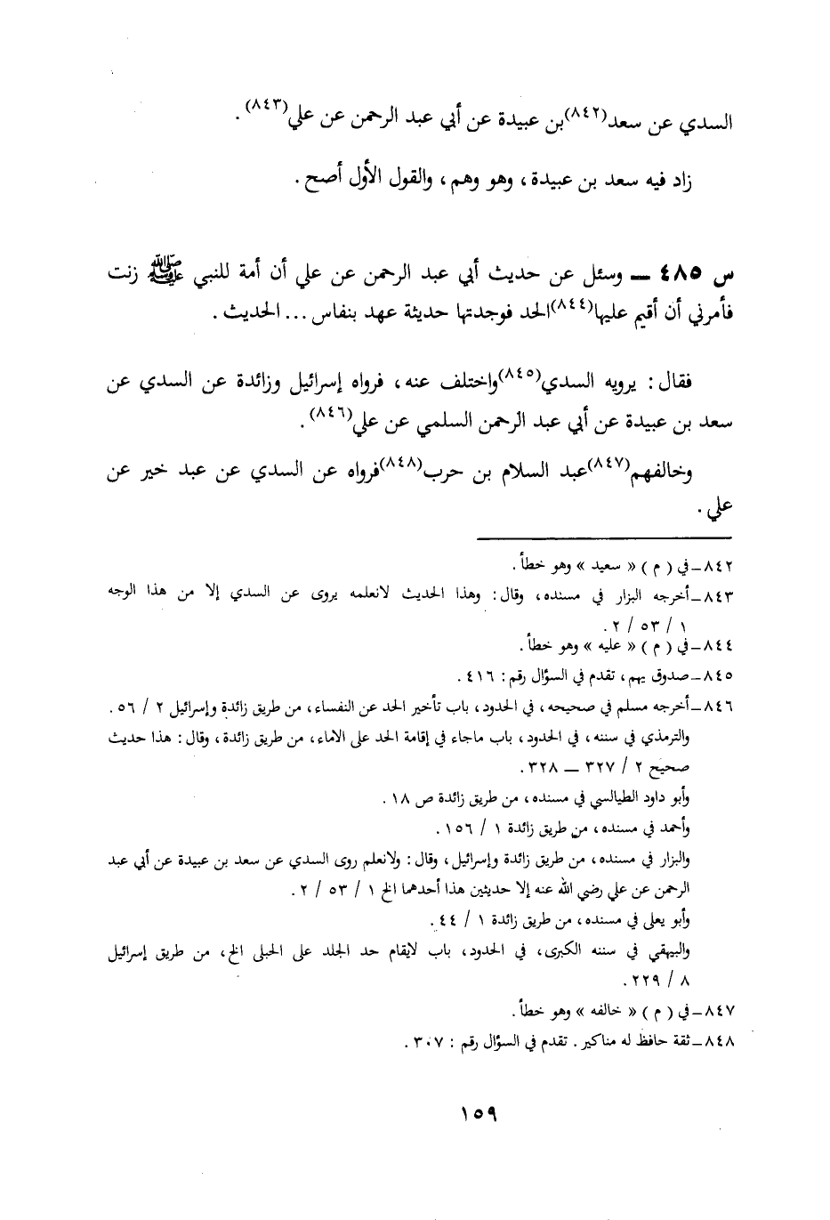 485- وسئل عن حديث أبي عبد الرحمن، عن عَلِيٍّ؛ أَنَّ أَمَةً لِلنَّبِيِّ صَلَّى اللَّهُ عَلَيْهِ وَسَلَّمَ زَنَتْ، فَأَمَرَنِي أَنْ أَقُيمَ عَلَيْهَا الْحَدَّ، فَوَجَدْتُهَا حَدِيثَةَ عَهْدٍ بِنِفَاسٍ ... الْحَدِيثَ.