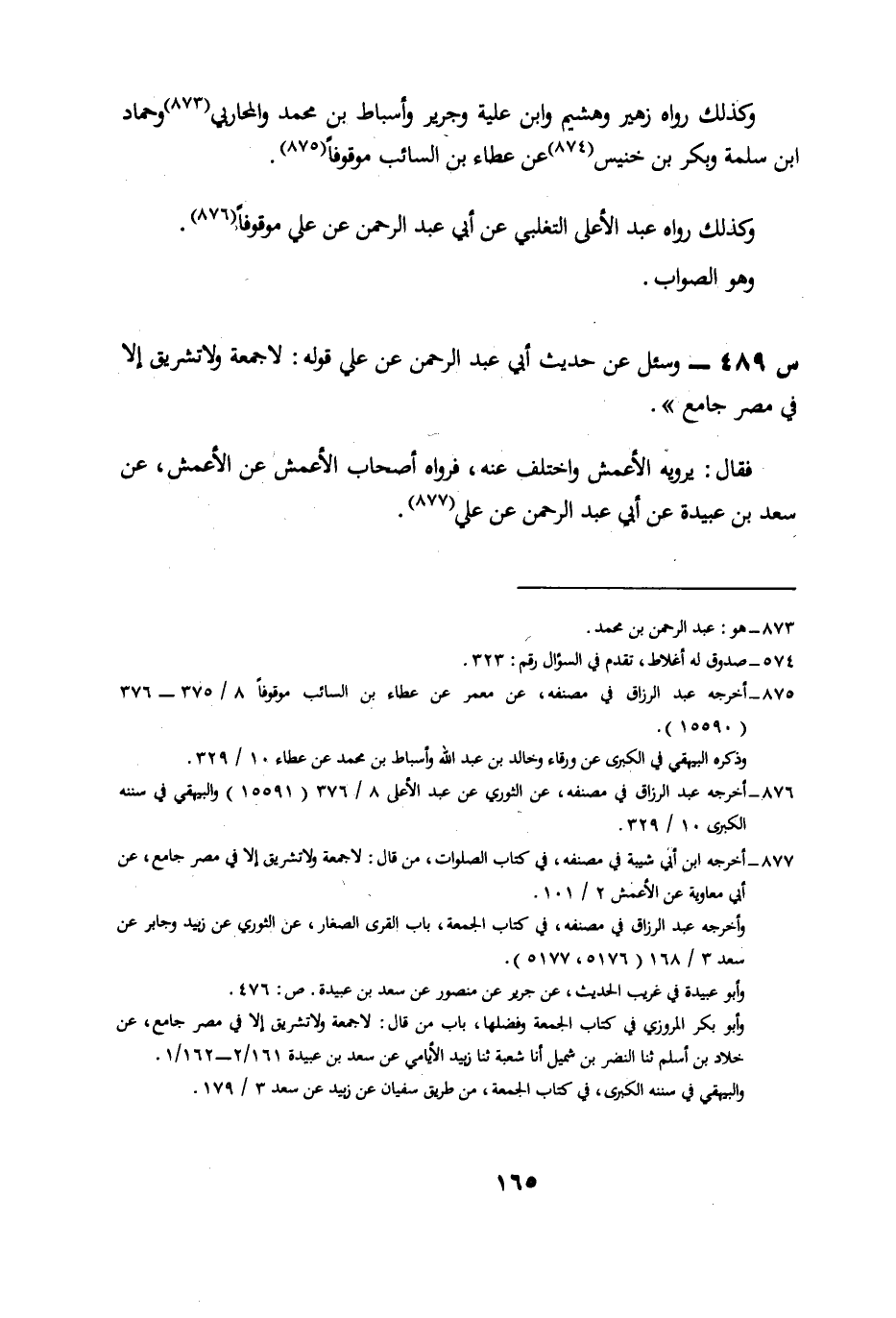 489- وسئل عن حديث أبي عبد الرحمن، عن عَلِيٍّ قَوْلُهُ لَا جُمُعَةَ وَلَا تَشْرِيقَ إِلَّا فِي مِصْرٍ جَامِعٍ.
