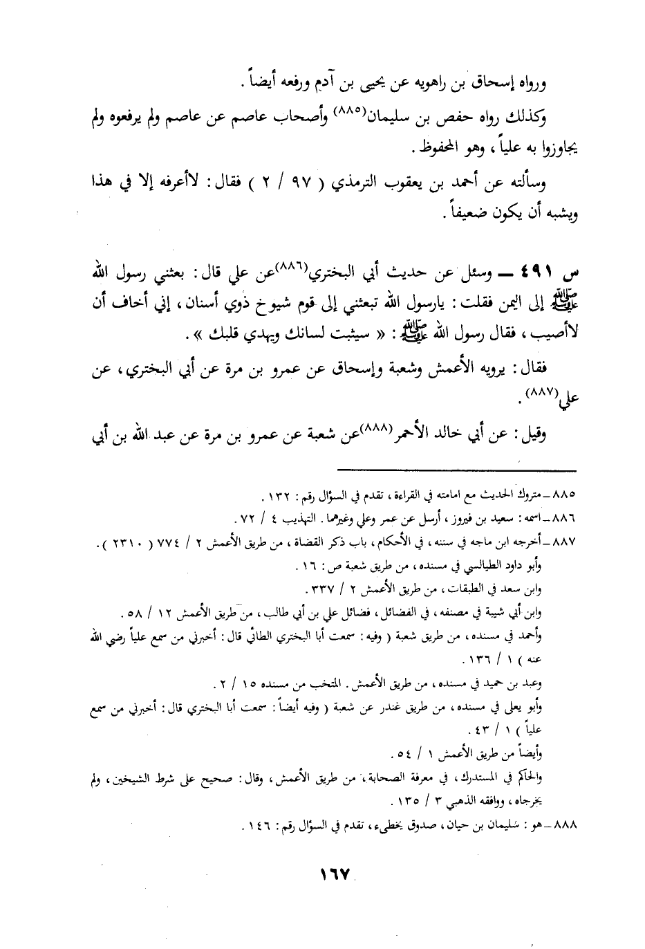 491- وَسُئِلَ عَنْ حَدِيثِ أَبِي الْبَخْتَرِيِّ، عَنْ عَلِيٍّ، قَالَ: بَعَثَنِي رَسُولُ اللَّهِ صَلَّى اللَّهُ عَلَيْهِ وَسَلَّمَ إِلَى الْيَمَنِ، فَقُلْتُ: يَا رَسُولَ اللَّهِ، تبعثني إلى قوم شيوخ، ذوي أَسْنَانٍ، إِنِّي أَخَافُ أَنْ لَا أُصِيبَ، فَقَالَ رَسُولُ اللَّهِ صَلَّى اللَّهُ عَلَيْهِ وَسَلَّمَ: سَيُثَبِّتُ لِسَانَكَ وَيَهْدِي قَلْبَكَ.
