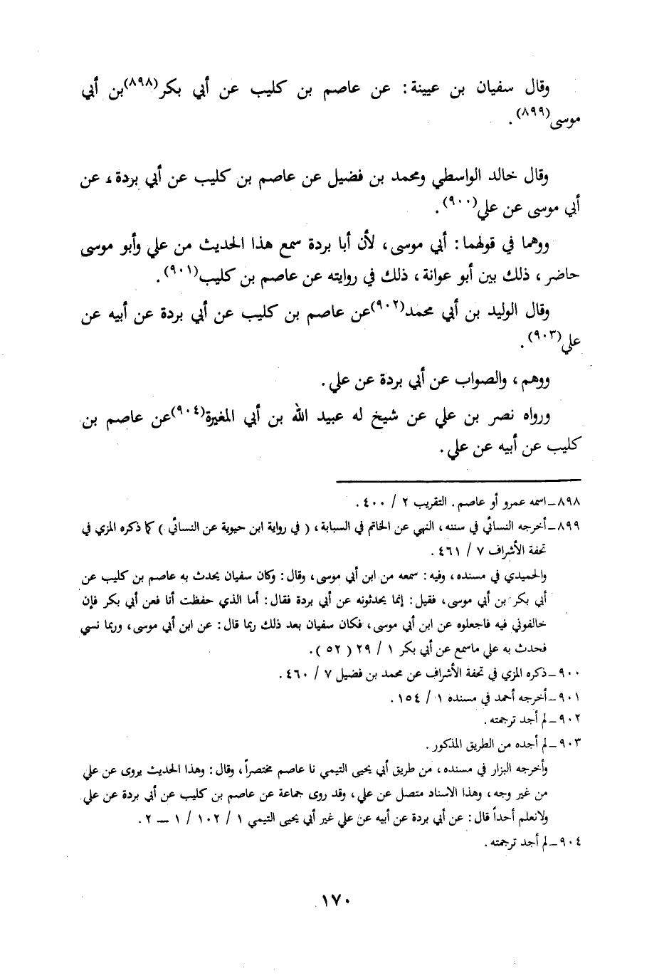 وَقَالَ خَالِدٌ الْوَاسِطِيُّ، وَمُحَمَّدُ بْنُ فُضَيْلٍ، عَنْ عَاصِمِ بْنِ كُلَيْبٍ، عَنْ أَبِي بُرْدَةَ، عَنْ أَبِي مُوسَى، عَنْ عَلِيٍّ.