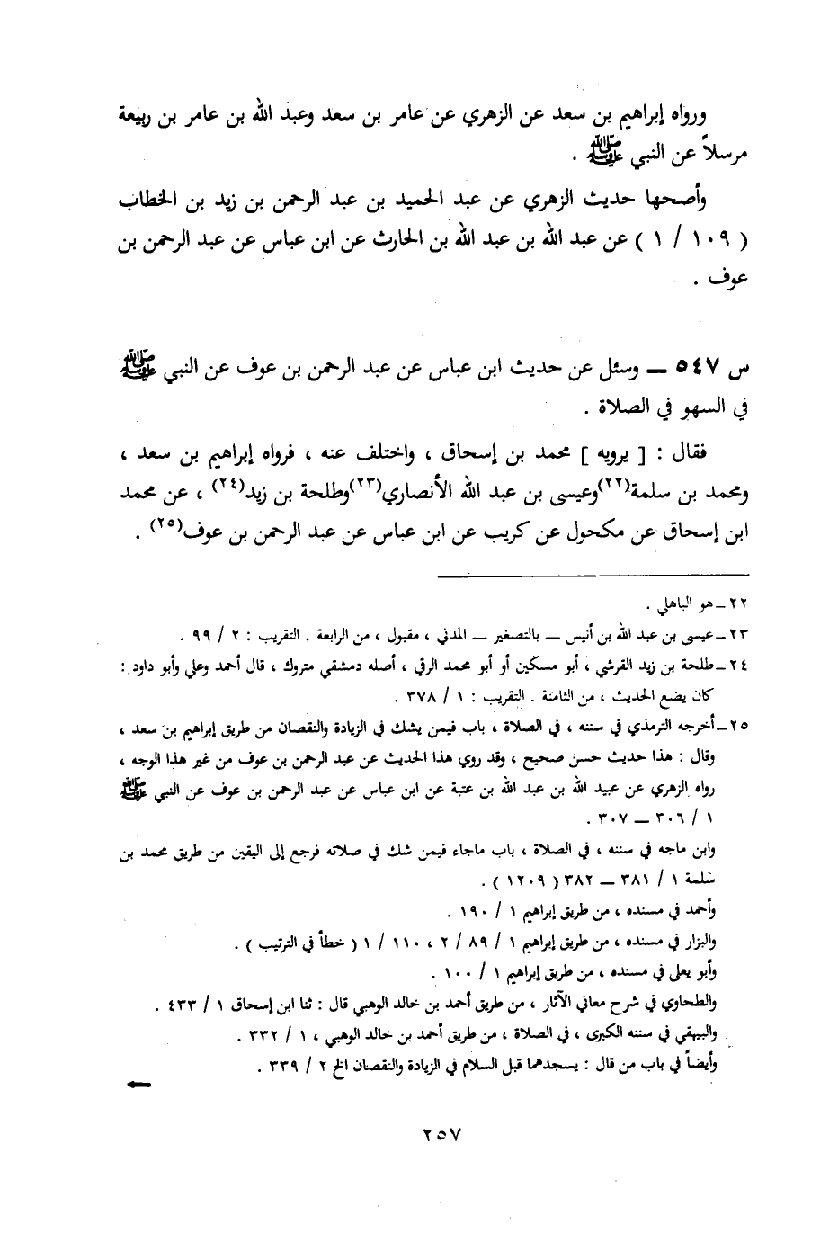 547- وَسُئِلَ عَنْ حَدِيثِ ابْنِ عَبَّاسٍ، عَنْ عَبْدِ الرَّحْمَنِ بْنِ عَوْفٍ، عَنِ النَّبِيِّ صَلَّى اللَّهُ عَلَيْهِ وَسَلَّمَ فِي السَّهْوِ فِي الصَّلَاةِ.