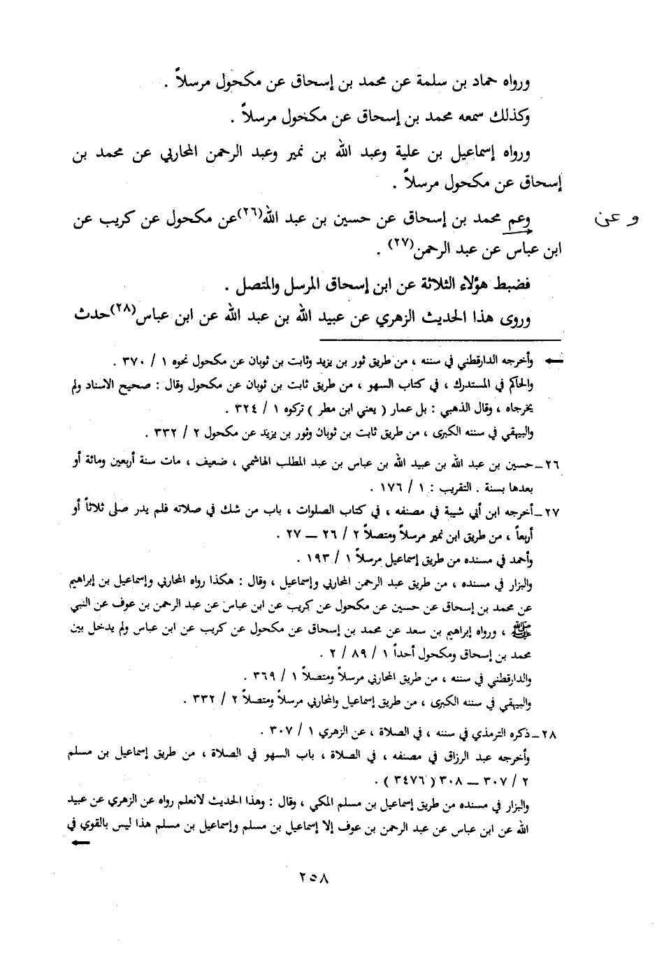 وعن (1) مُحَمَّدِ بْنِ إِسْحَاقَ، عَنْ حُسَيْنِ بْنِ عَبْدِ اللَّهِ، عَنْ مَكْحُولٍ، عَنْ كُرَيْبٍ، عَنِ ابْنِ عَبَّاسٍ، عَنْ عَبْدِ الرَّحْمَنِ.