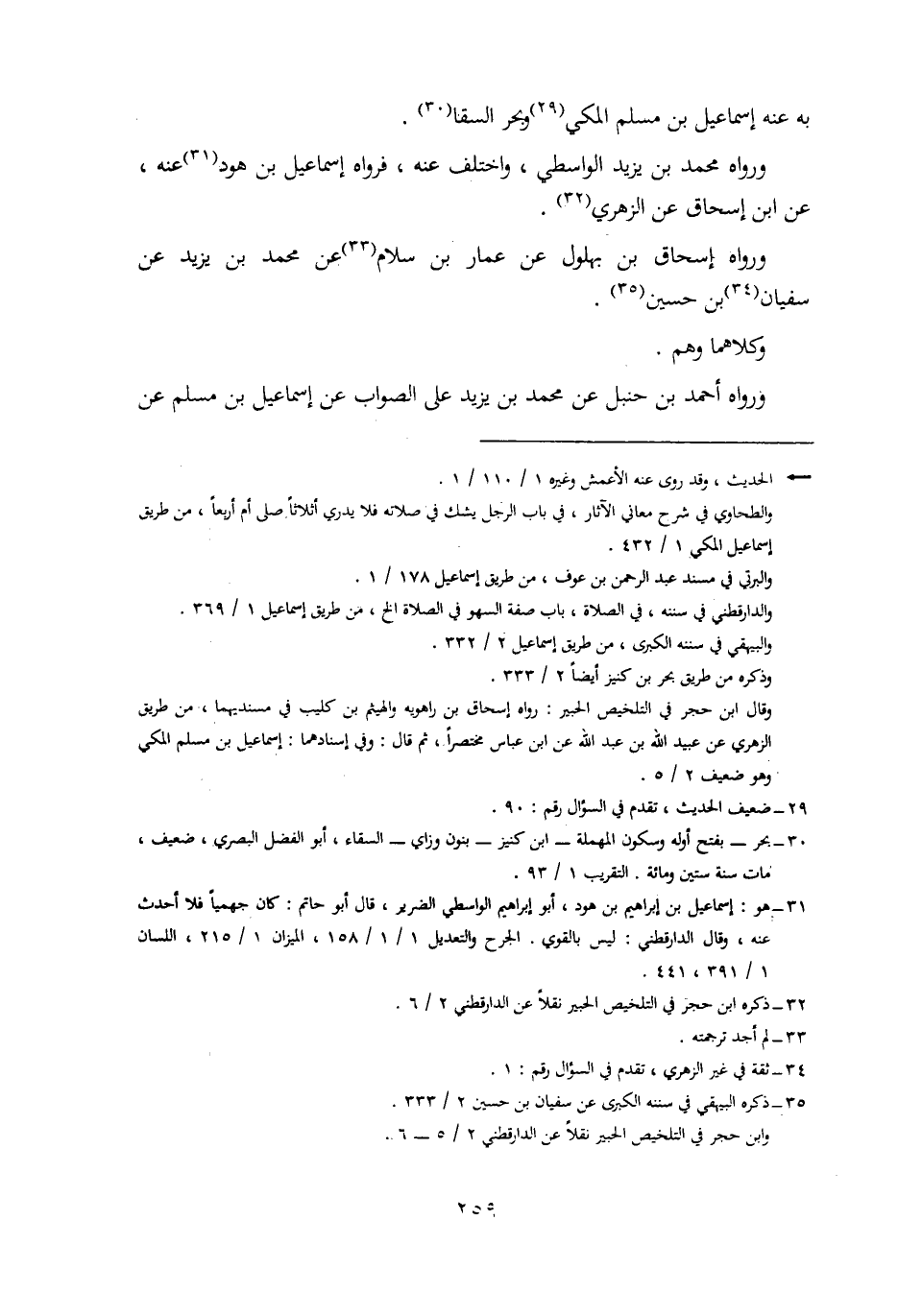 وَرَوَاهُ أَحْمَدُ بْنُ حَنْبَلٍ، عَنْ مُحَمَّدِ بْنِ يَزِيدَ عَلَى الصَّوَابِ، عَنْ إِسْمَاعِيلَ بْنِ مُسْلِمٍ، عن الزهري (1) .