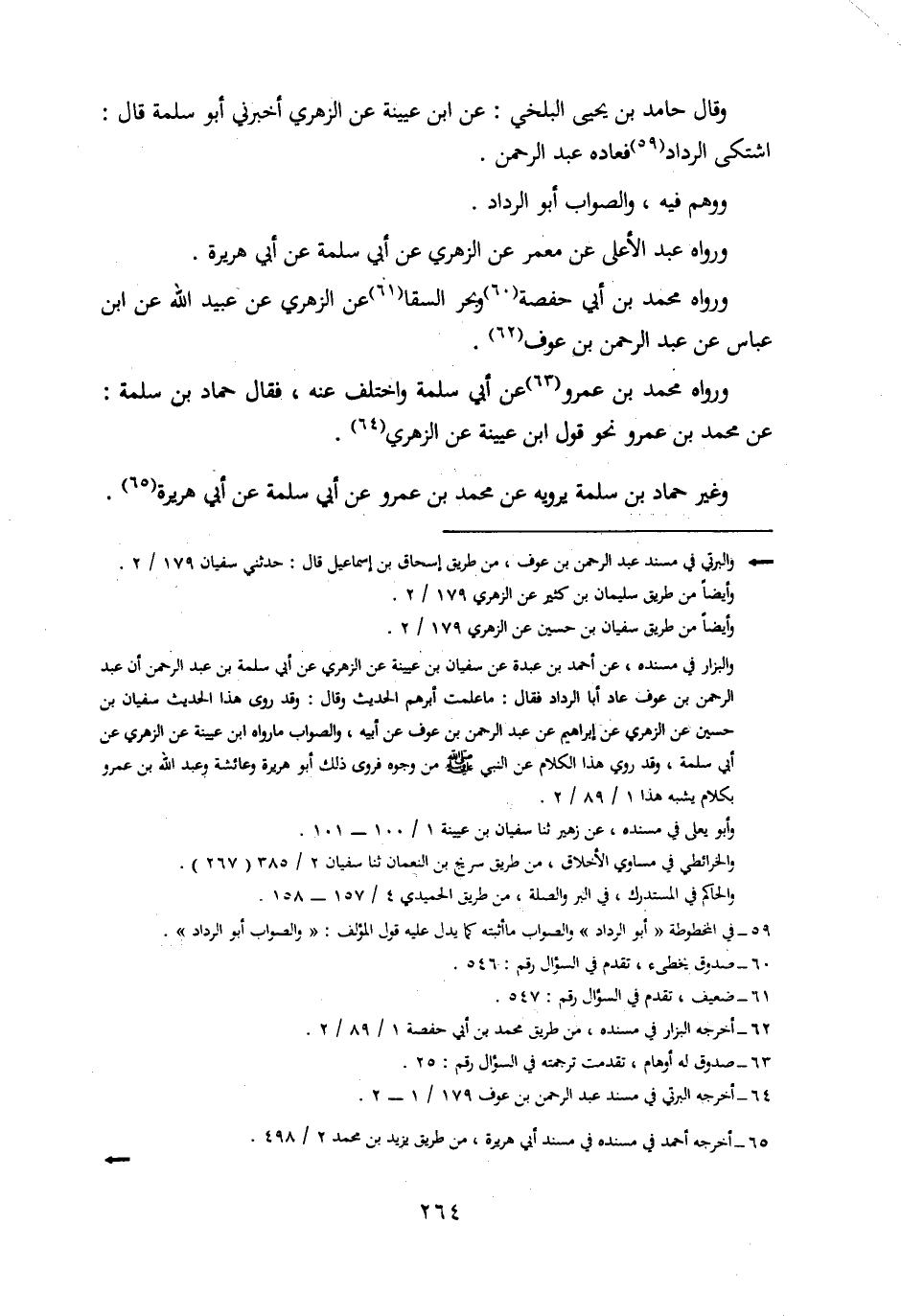وَقَالَ حَامِدُ بْنُ يَحْيَى الْبَلْخِيُّ، عَنِ ابْنِ عُيَيْنَةَ، عَنِ الزُّهْرِيِّ، أَخْبَرَنِي أَبُو سَلَمَةَ، قَالَ: اشْتَكَى الرَّدَّادُ فَعَادَهُ عَبْدُ الرَّحْمَنِ.