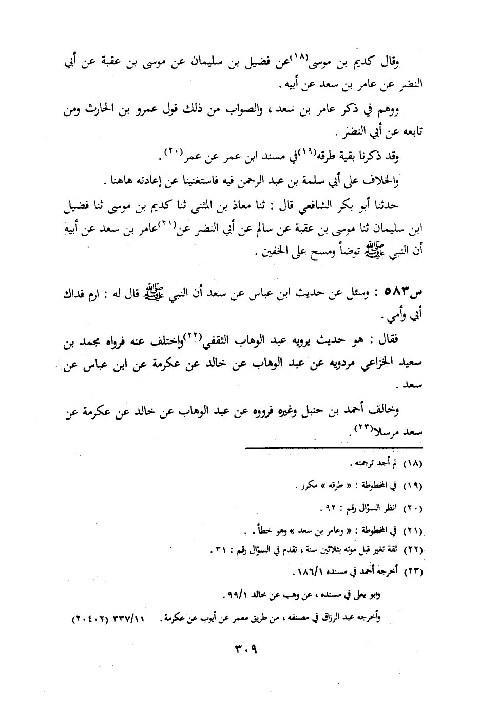 583- وَسُئِلَ عَنْ حَدِيثِ ابْنِ عَبَّاسٍ، عَنْ سَعْدٍ: أن النبي صلى الله عليه وسلم، قال لَهُ: ارْمِ فِدَاكَ أَبِي وَأُمِّي.