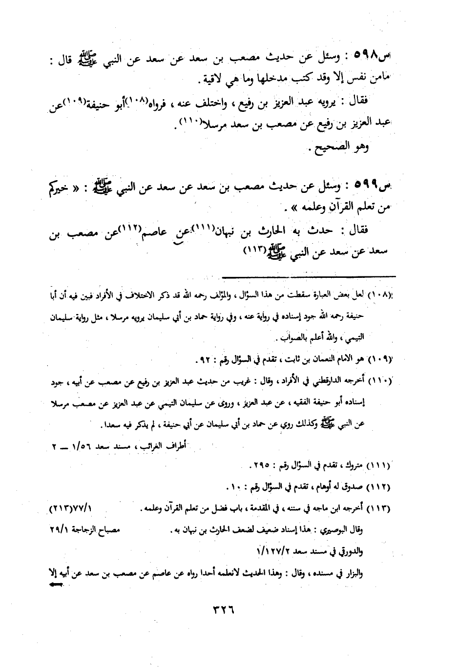 599- وَسُئِلَ عَنْ حَدِيثِ مُصْعَبِ بْنِ سَعْدٍ، عَنْ سَعْدٍ، عَنِ النَّبِيِّ صَلَّى اللَّهُ عَلَيْهِ وَسَلَّمَ: خَيْرُكُمْ مَنْ تَعَلَّمَ الْقُرْآنَ وَعَلَّمَهُ.
