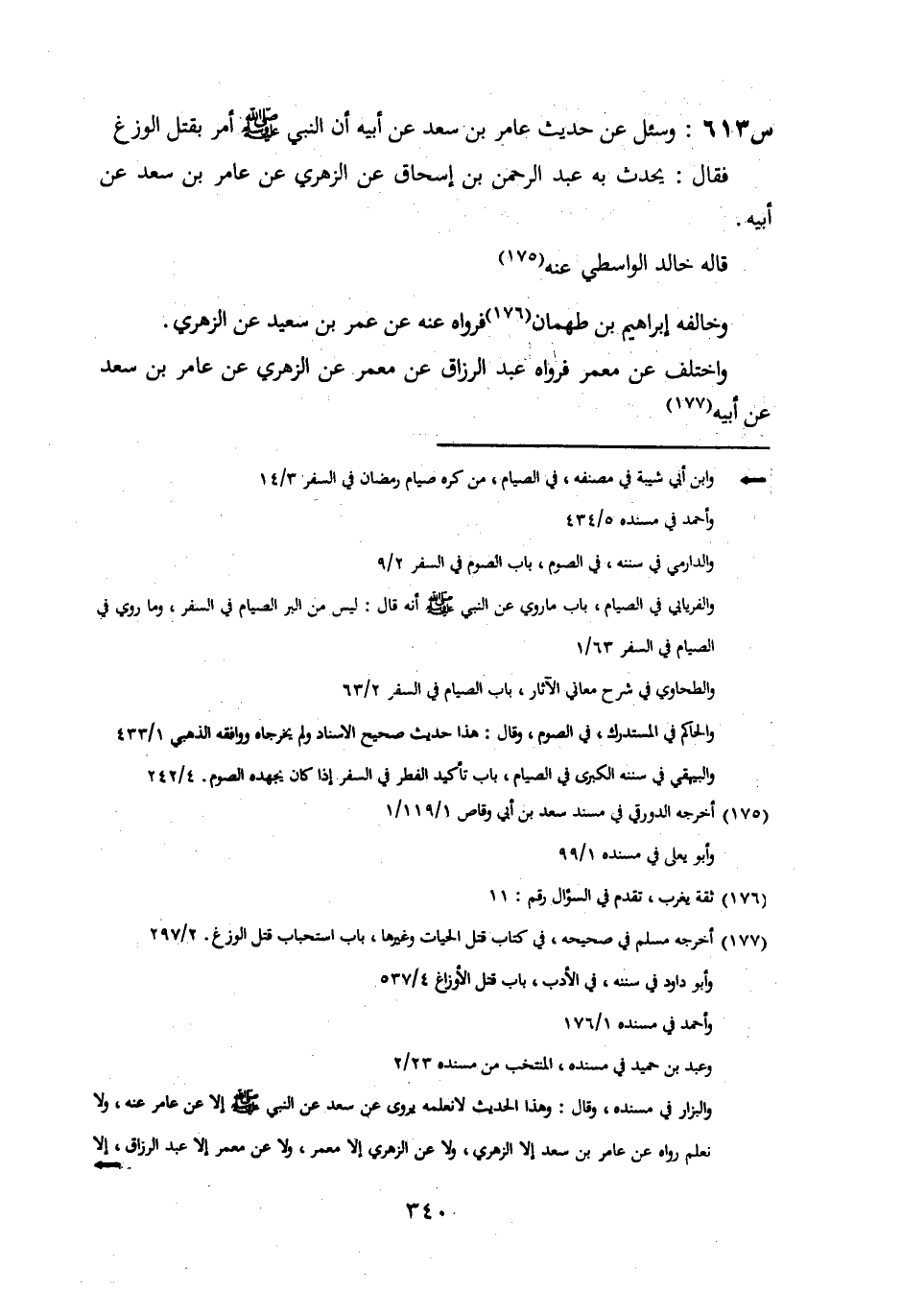 613- وَسُئِلَ عَنْ حَدِيثِ عَامِرِ بْنِ سَعْدٍ، عَنْ أَبِيهِ، أَنَّ النَّبِيَّ صَلَّى اللَّهُ عَلَيْهِ وَسَلَّمَ: أَمَرَ بِقِتْلِ الْوَزَغِ فَقَالَ: يُحَدِّثُ بِهِ عَبْدُ الرَّحْمَنِ بْنُ إِسْحَاقَ، عَنِ الزُّهْرِيِّ، عَنْ عَامِرِ بْنِ سَعْدٍ، عَنْ أَبِيهِ.