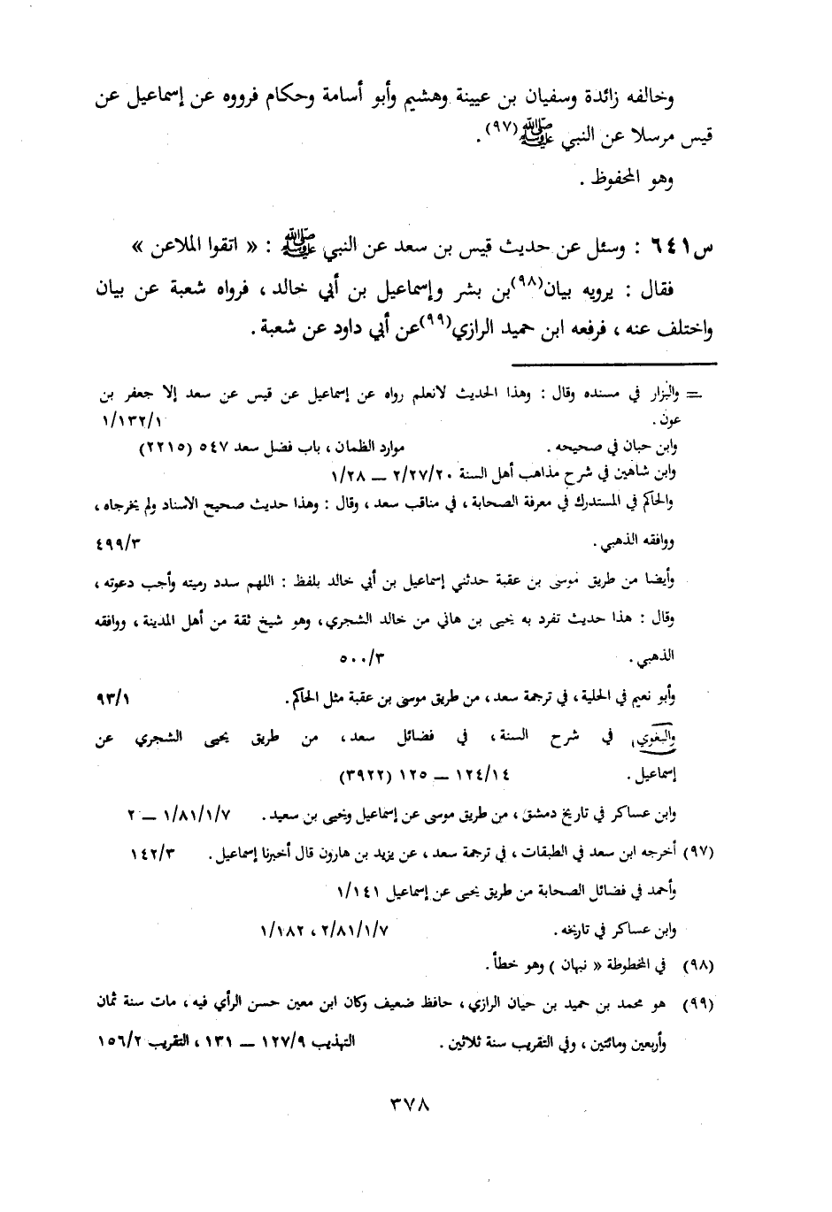641- وَسُئِلَ عَنْ حَدِيثِ قَيْسِ بْنِ سَعْدٍ، عَنِ النَّبِيِّ صَلَّى اللَّهُ عَلَيْهِ وَسَلَّمَ: اتَّقُوا الْمَلَاعِنَ.
