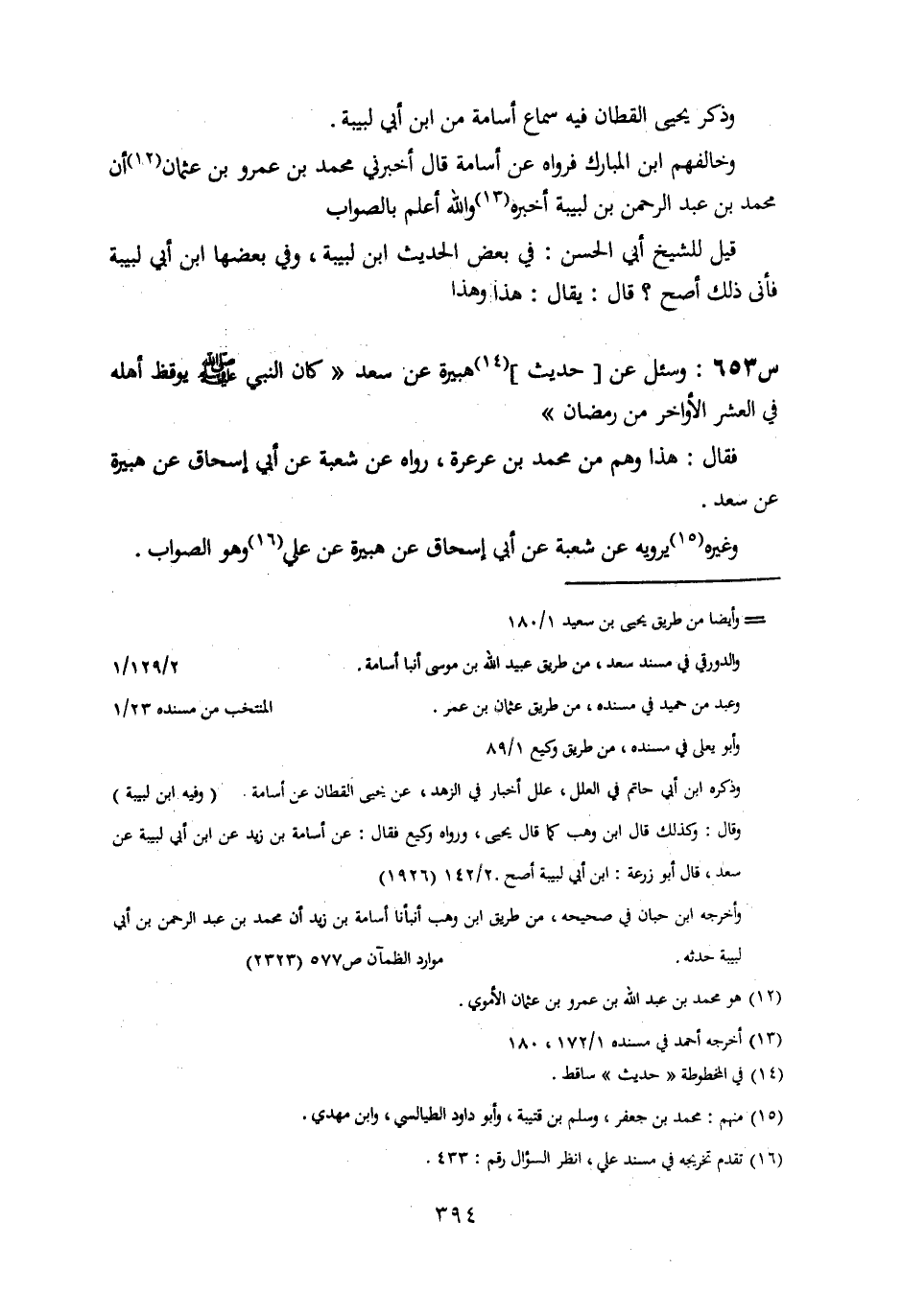 653- وَسُئِلَ عَنْ حَدِيثِ هُبَيْرَةَ، عَنْ سَعْدٍ كَانَ النَّبِيُّ صَلَّى اللَّهُ عَلَيْهِ وَسَلَّمَ يُوقِظُ أَهْلَهُ فِي الْعَشْرِ الْأَوَاخِرِ مِنْ رَمَضَانَ.