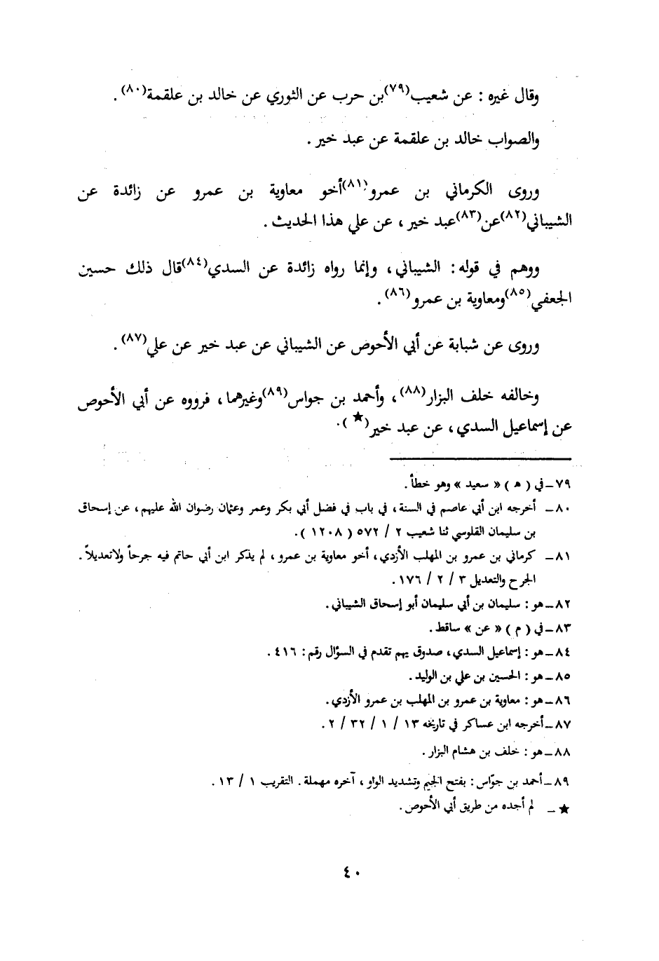 وَخَالَفَهُ خَلَفٌ الْبَزَّارُ وَأَحْمَدُ بْنُ جَوَّاسٍ وَغَيْرُهُمَا فَرَوُوهُ، عَنْ أَبِي الْأَحْوَصِ، عَنْ إِسْمَاعِيلَ السُّدِّيِّ عَنْ عَبْدِ خَيْرٍ.