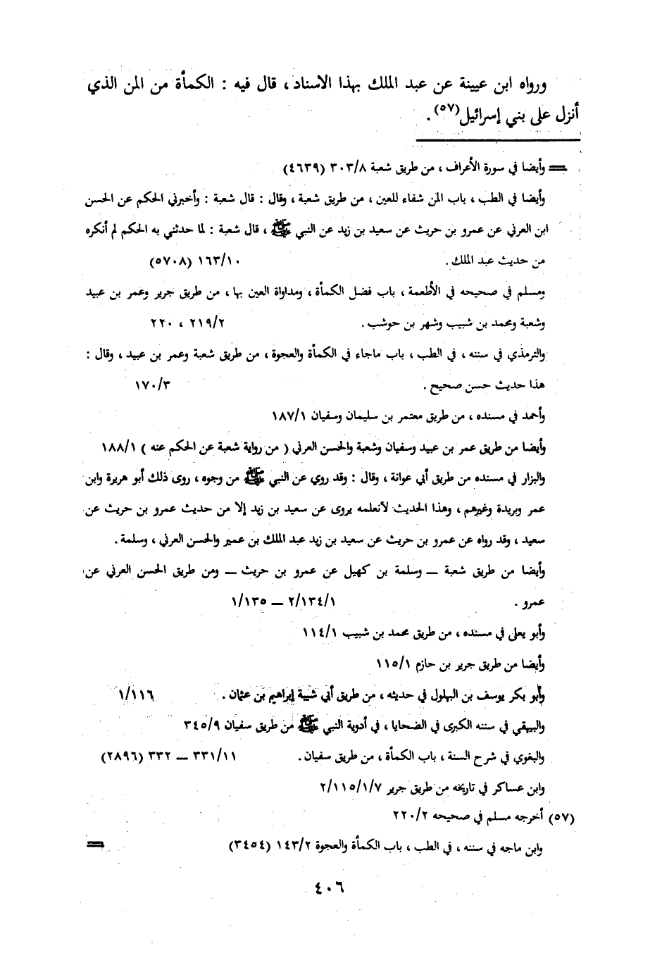 وَرَوَاهُ ابْنُ عُيَيْنَةَ، عَنْ عَبْدِ الْمَلِكِ بِهَذَا الْإِسْنَادِ، قَالَ فِيهِ: الْكَمْأَةُ مِنَ الْمَنِّ الَّذِي أُنْزِلَ عَلَى بَنِي إِسْرَائِيلَ.