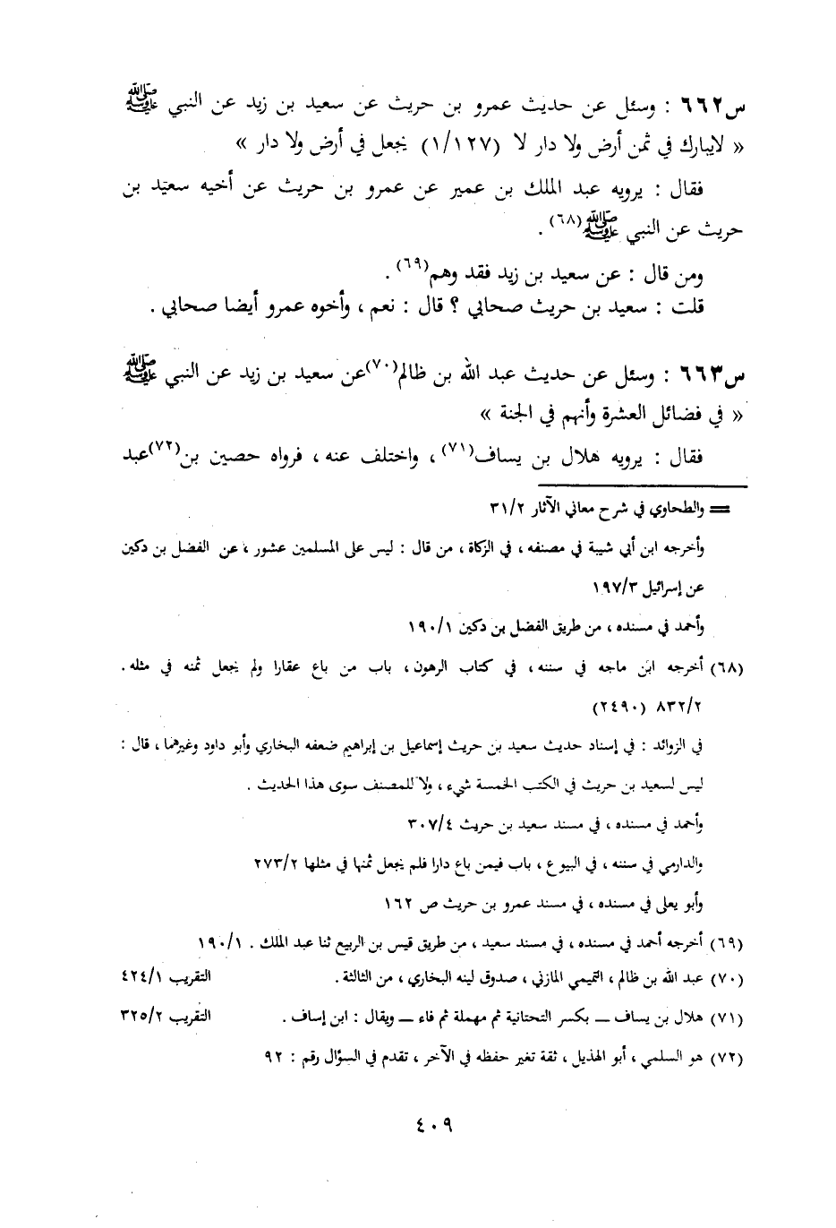 662- وَسُئِلَ عَنْ حَدِيثِ عَمْرِو بْنِ حُرَيْثٍ، عَنْ سَعِيدِ بْنِ زَيْدٍ، عَنِ النَّبِيِّ صَلَّى اللَّهُ عَلَيْهِ وَسَلَّمَ: لَا يُبَارَكُ فِي ثَمْنِ أَرْضٍ وَلَا دَارٍ لَا يُجْعَلُ فِي أَرْضٍ وَلَا دَارٍ.