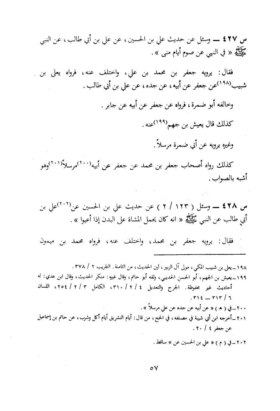 427- وَسُئِلَ عَنْ حَدِيثِ عَلِيِّ بْنِ الْحُسَيْنِ، عَنْ عَلِيِّ بْنِ أَبِي طَالِبٍ، عَنِ النَّبِيِّ صَلَّى اللَّهُ عَلَيْهِ وَسَلَّمَ فِي النَّهْيِ: عَنْ صَوْمِ أَيَّامِ مِنًى.