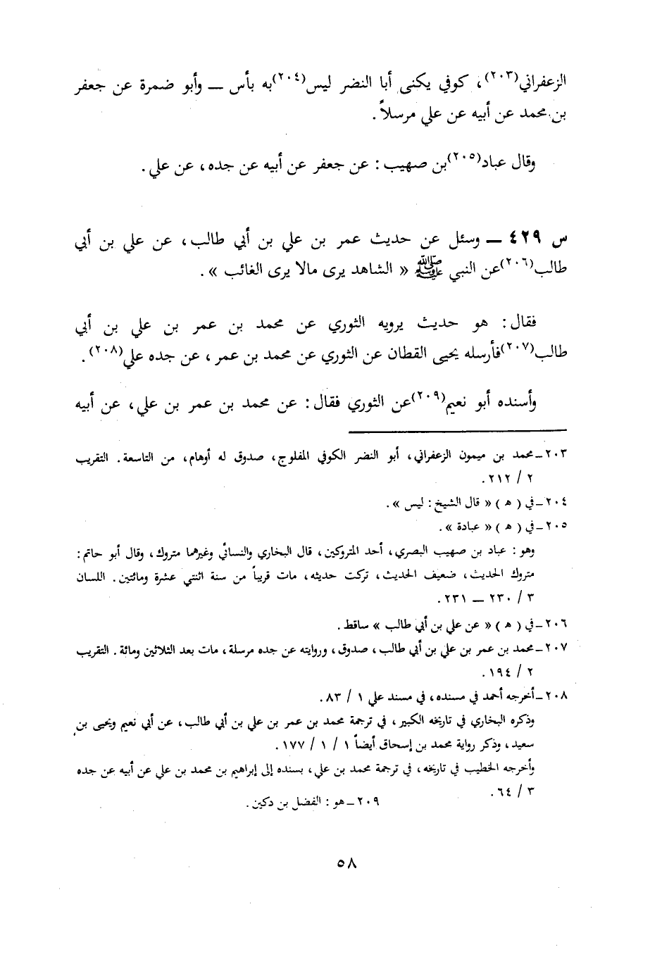 429- وَسُئِلَ عَنْ حَدِيثِ عُمَرَ بْنِ عَلِيِّ بْنِ أَبِي طَالِبٍ، عَنْ عَلِيِّ بْنِ أَبِي طَالِبٍ، عَنِ النَّبِيِّ صَلَّى اللَّهُ عَلَيْهِ وَسَلَّمَ: الشَّاهِدُ يَرَى مَالَا يَرَى الْغَائِبُ.