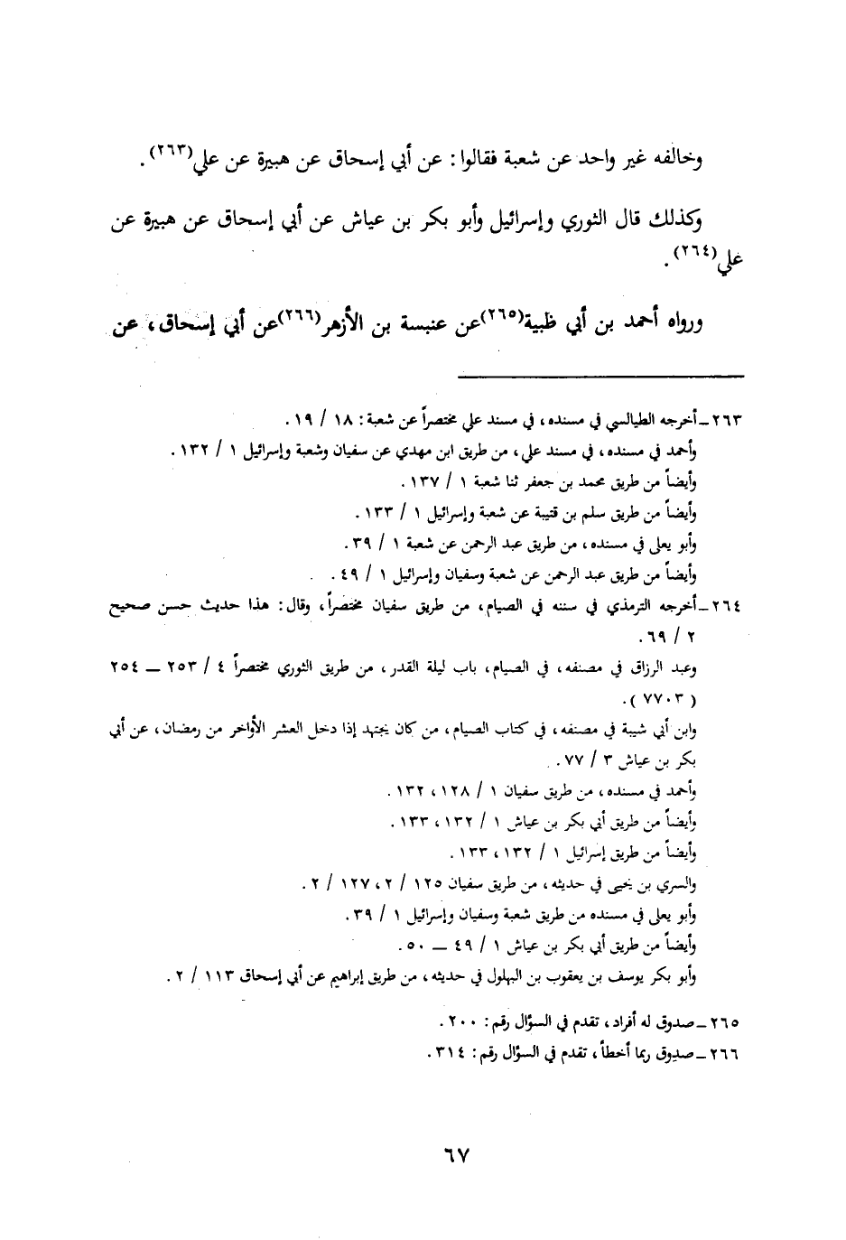وَكَذَلِكَ قَالَ الثَّوْرِيُّ، وَإِسْرَائِيلُ، وَأَبُو بَكْرِ بْنُ عَيَّاشٍ، عَنْ أَبِي إِسْحَاقَ، عَنْ هُبَيْرَةَ، عَنْ عَلِيٍّ.