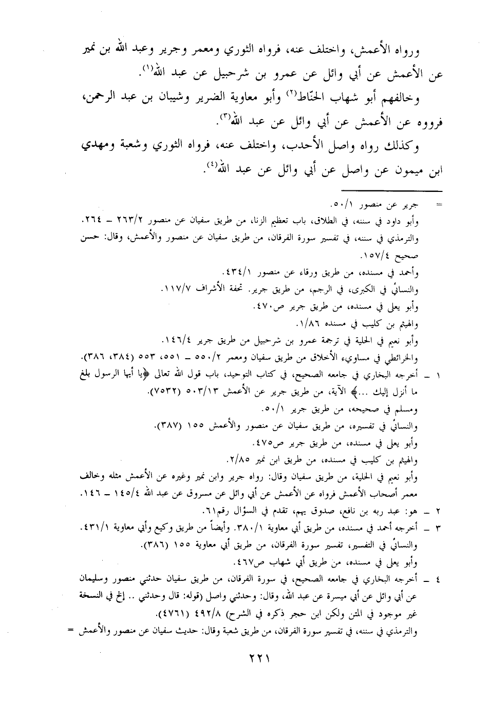 وَرَوَاهُ عَبْدُ الرَّحْمَنِ بْنُ مَهْدِيٍّ، عَنِ الثَّوْرِيِّ، عَنْ وَاصِلٍ، عَنْ أَبِي وَائِلٍ، عَنْ عَمْرِو بْنِ شُرَحْبِيلَ، عَنْ عَبْدِ اللَّهِ.