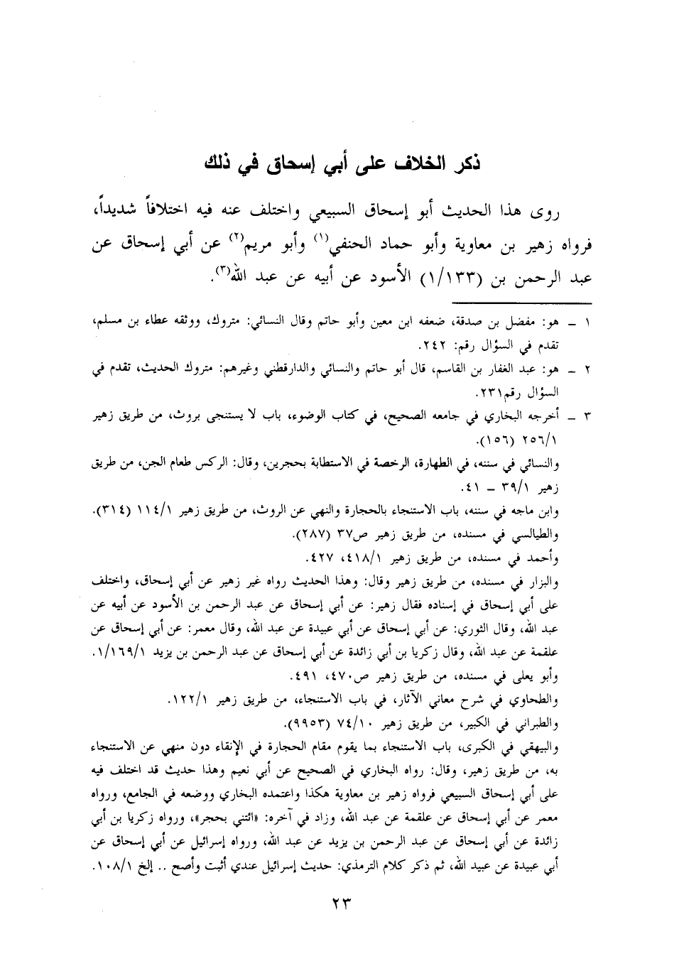 ذِكْرُ الْخِلَافِ عَلَى أَبِي إِسْحَاقَ فِي ذَلِكَ.