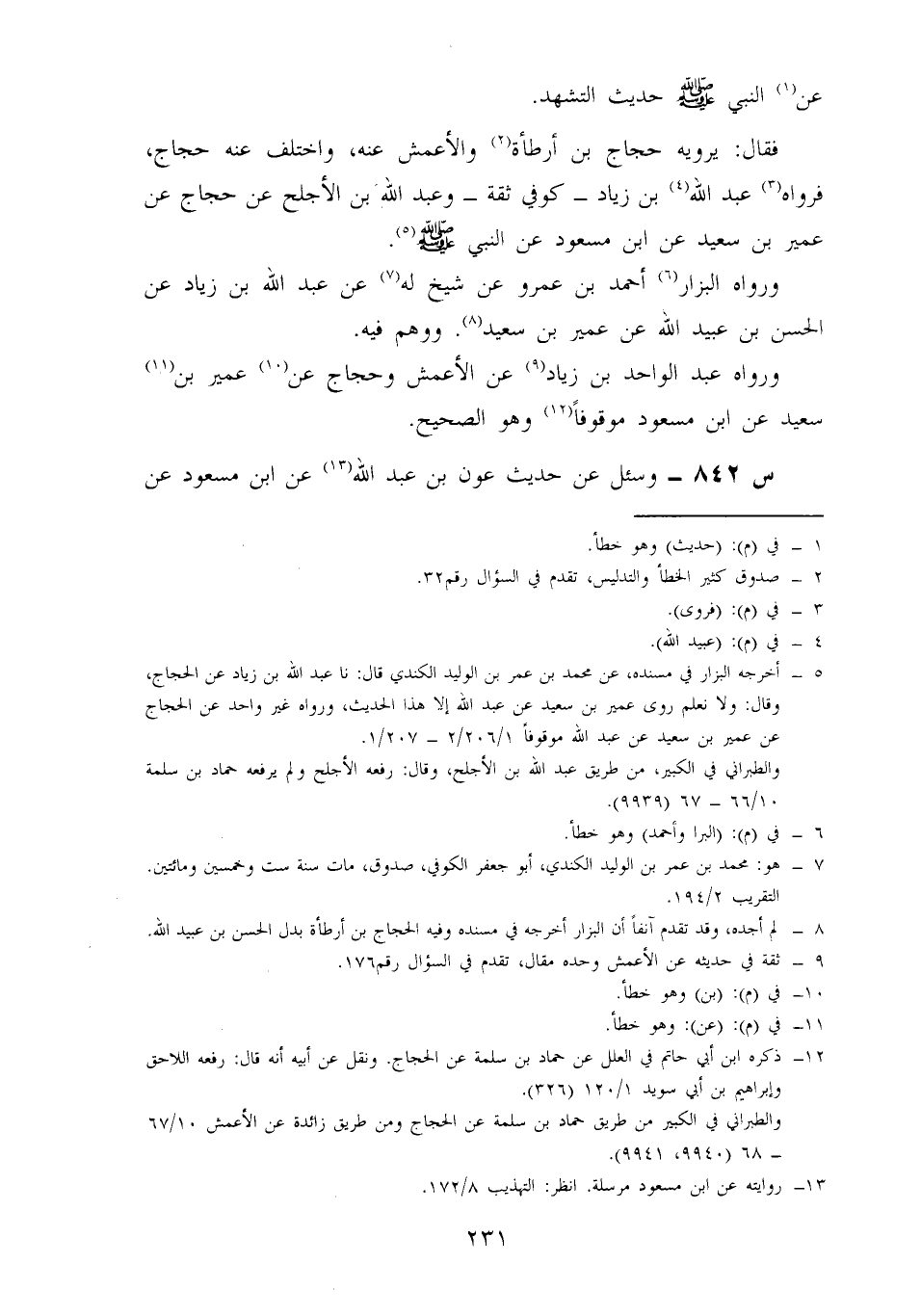 841- وَسُئِلَ عَنْ حَدِيثِ عُمَيْرِ بْنِ سَعِيدٍ، عَنِ ابْنِ مَسْعُودٍ عَنِ النَّبِيِّ صَلَّى اللَّهُ عَلَيْهِ وَسَلَّمَ حَدِيثَ التَّشَهُّدِ.