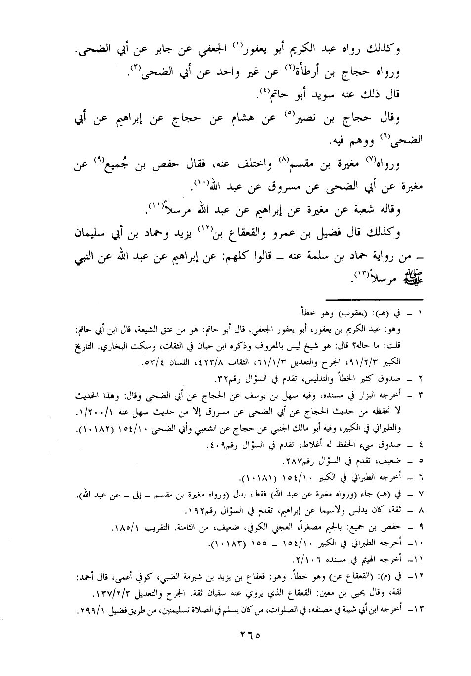 وَكَذَلِكَ رَوَاهُ عَبْدُ الْكَرِيمِ أَبُو يَعْفُورٍ الْجُعْفِيُّ، عَنْ جَابِرٍ، عَنْ أَبِي الضُّحَى.