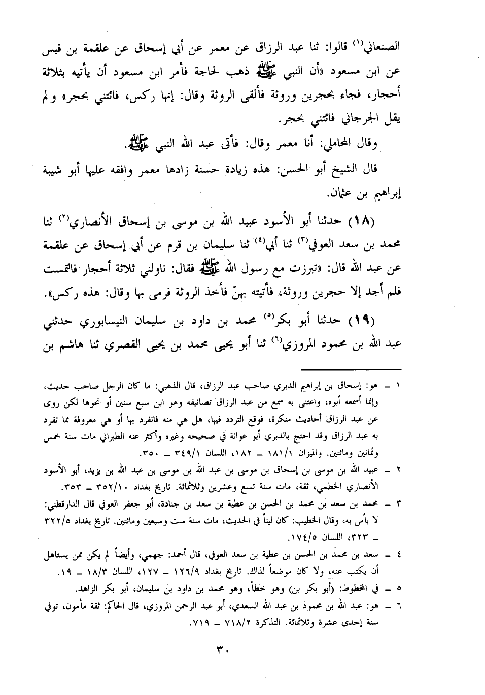 (17) وحدثنا محمد بن إسماعيل بن إسحاق الفارسي، حدثنا إسحاق بن إبراهيم الصنعاني، قالوا: حدثنا عَبْدُ الرَّزَّاقِ، عَنْ مَعْمَرٍ، عَنْ أَبِي إِسْحَاقَ، عَنْ عَلْقَمَةَ بْنِ قَيْسٍ، عَنِ ابْنِ مَسْعُودٍ أَنَّ النَّبِيَّ صَلَّى اللَّهُ عَلَيْهِ وَسَلَّمَ ذَهَبَ لِحَاجَةٍ، فَأَمَرَ ابْنَ مَسْعُودٍ أَنْ يَأْتِيَهُ بِثَلَاثَةِ أَحْجَارٍ، فَجَاءَ بِحَجَرَيْنِ وَرَوْثَةٍ، فَأَلْقَى الرَّوْثَةَ، وَقَالَ: إِنَّهَا رِكْسٌ، فَائْتِنِي بِحَجَرٍ وَلَمْ يَقُلِ الْجُرْجَانِيُّ: فائتني بحجر.