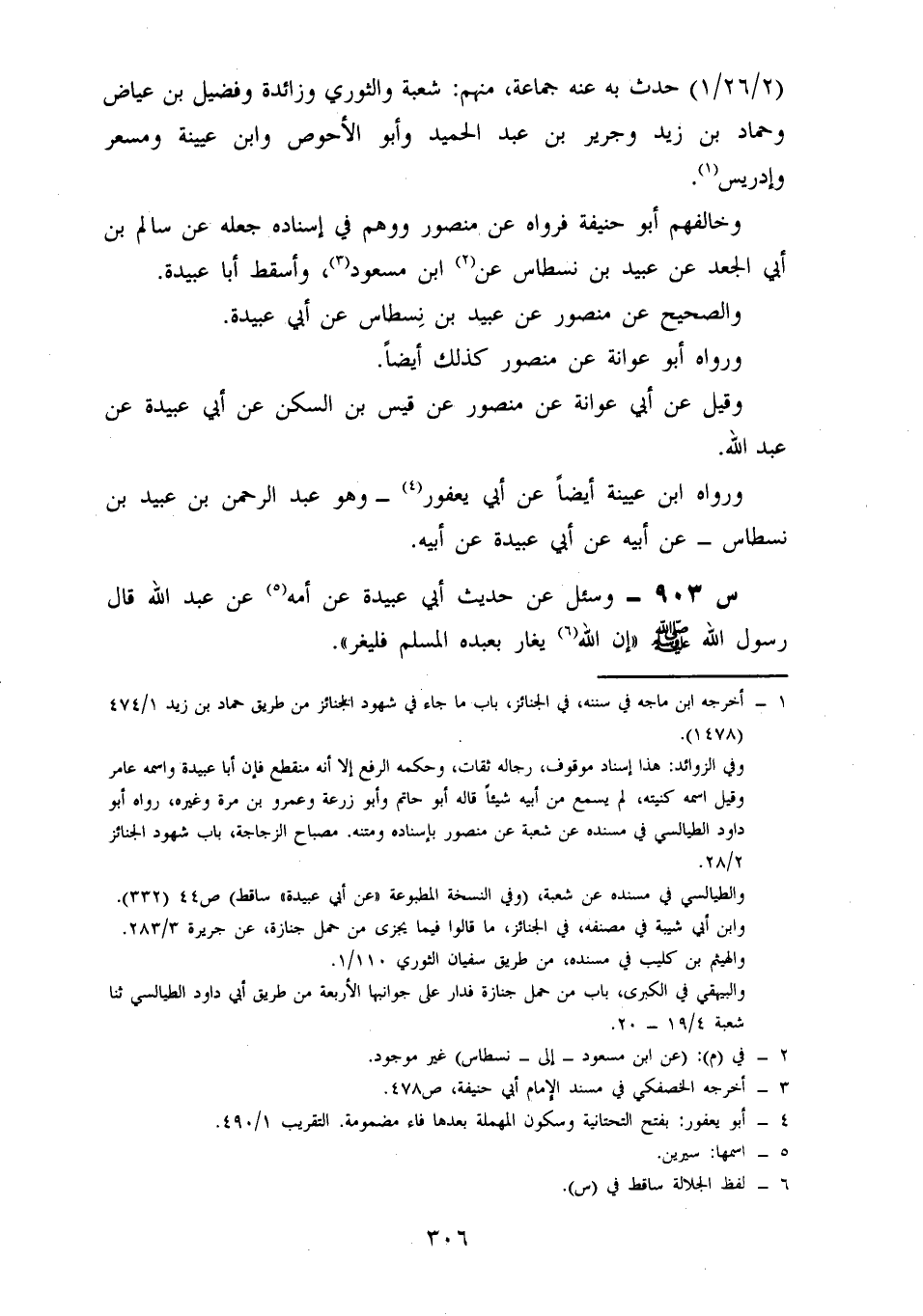 وَخَالَفَهُمْ أَبُو حَنِيفَةَ، فَرَوَاهُ، عَنْ مَنْصُورٍ، وَوَهِمَ فِي إِسْنَادِهِ، جَعَلَهُ عَنْ سَالِمِ بْنِ أَبِي الْجَعْدِ، عَنْ عُبَيْدِ بْنِ نِسْطَاسٍ، عَنِ ابْنِ مَسْعُودٍ، وَأَسْقَطَ أَبَا عُبَيْدَةَ.
