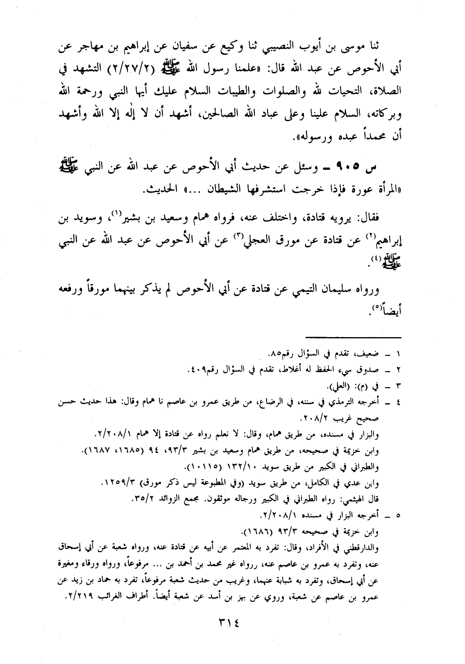 905- وسئل عن حديث أَبِي الْأَحْوَصِ، عَنْ عَبْدِ اللَّهِ، عَنِ النَّبِيِّ صَلَّى اللَّهُ عَلَيْهِ وَسَلَّمَ: الْمَرْأَةُ عَوْرَةٌ فَإِذَا خَرَجَتِ اسْتَشْرَفَهَا الشَّيْطَانُ، ... الْحَدِيثَ.