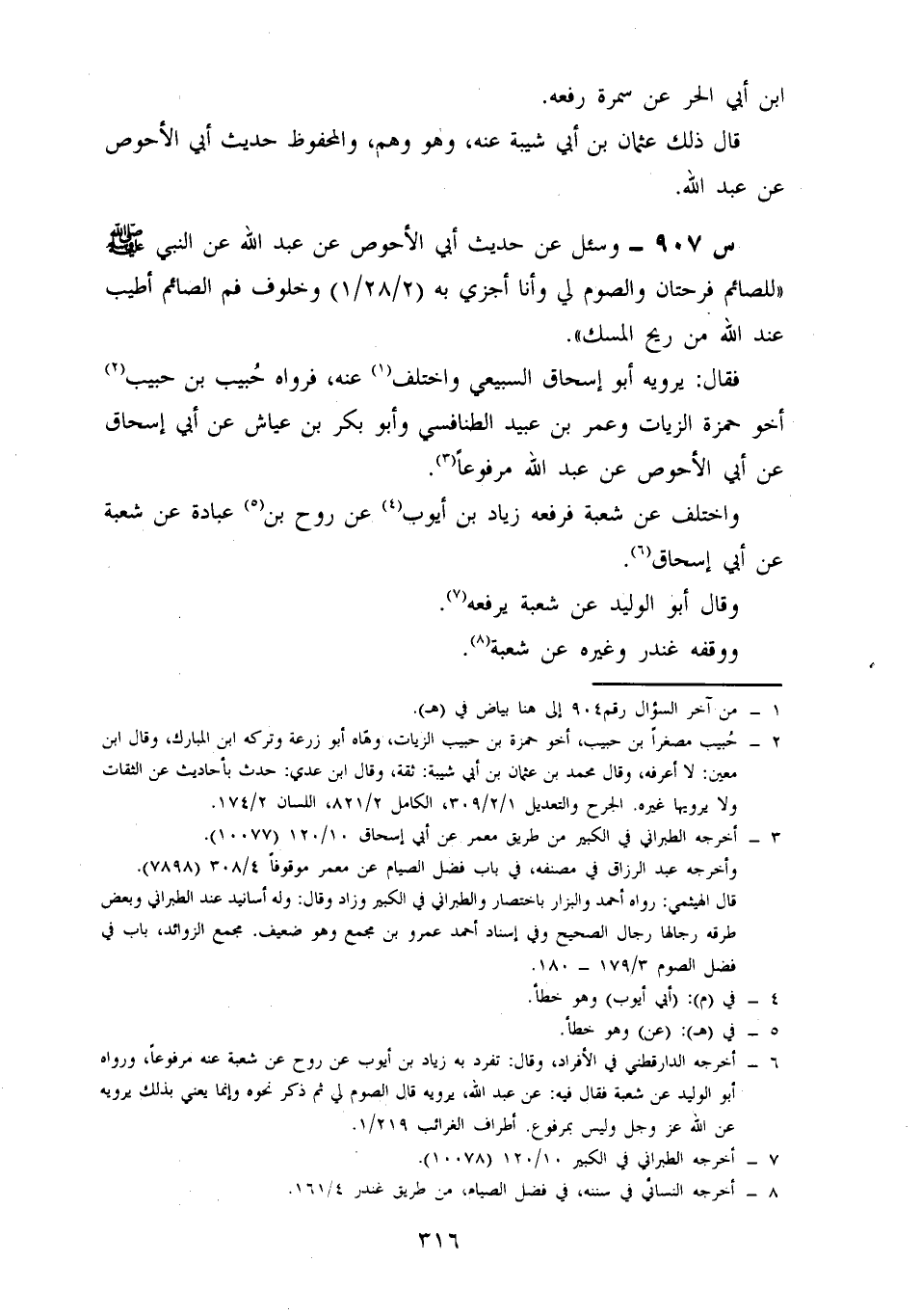 907- وسئل عن حديث أَبِي الْأَحْوَصِ، عَنْ عَبْدِ اللَّهِ، عَنِ النَّبِيِّ صَلَّى اللَّهُ عَلَيْهِ وَسَلَّمَ: لِلصَّائِمِ فَرْحَتَانِ، وَالصَّوْمُ لِي وَأَنَا أَجْزِي بِهِ، وَخُلُوفُ فَمِ الصَّائِمِ أَطْيَبُ عِنْدَ اللَّهِ مِنْ رِيحِ الْمِسْكِ.