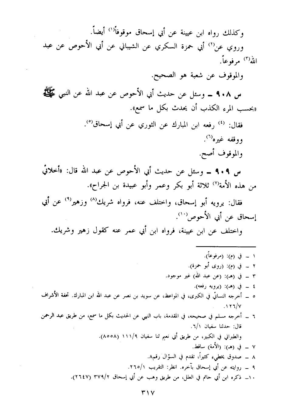 908- وسئل عن حديث أَبِي الْأَحْوَصِ، عَنْ عَبْدِ اللَّهِ، عَنِ النَّبِيِّ صَلَّى اللَّهُ عَلَيْهِ وَسَلَّمَ: بِحَسْبِ الْمَرْءِ الْكَذِبِ أَنْ يُحَدِّثَ بِكُلِّ مَا سَمِعَ.