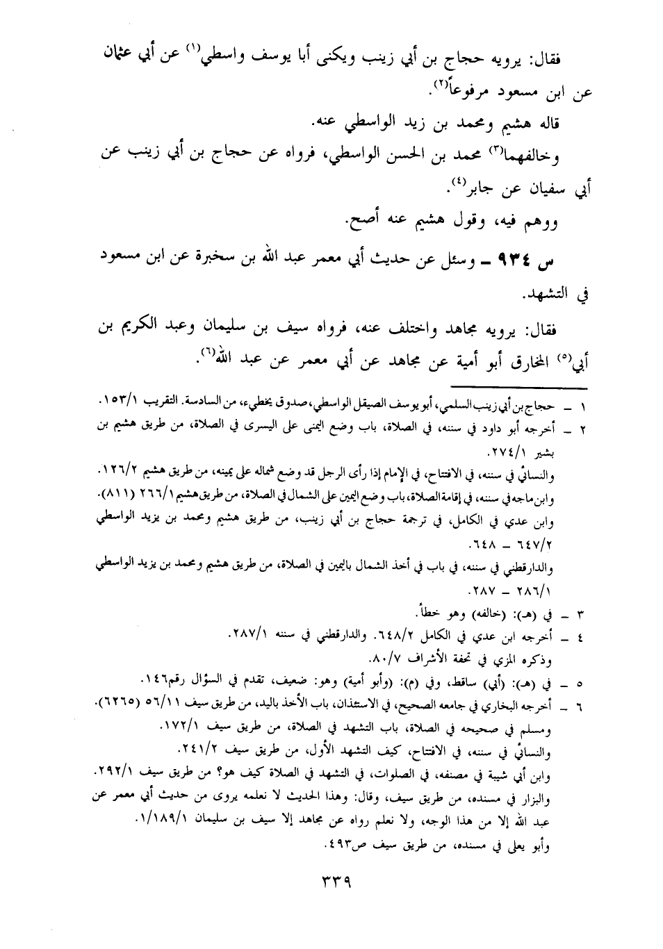 933- وَسُئِلَ عَنْ حَدِيثِ أَبِي عُثْمَانَ النَّهْدِيِّ، عَنْ ابْنِ مَسْعُودٍ كُنْتُ أُصَلِّي وَقَدْ وَضَعْتُ يَدِي الْيُسْرَى عَلَى الْيُمْنَى، فَجَاءَنِي النَّبِيُّ صَلَّى اللَّهُ عَلَيْهِ وَسَلَّمَ فَأَخَذَ بِيَدِي الْيُمْنَى فَوَضَعَهَا عَلَى الْيُسْرَى.