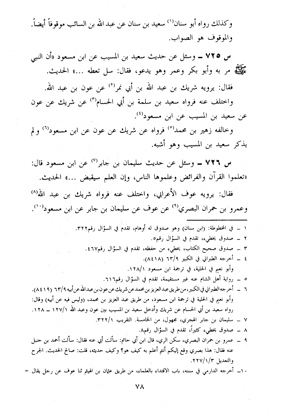 726- وسئل عن حديث سليمان بن جابر، عَنِ ابْنِ مَسْعُودٍ، قَالَ: تَعَلَّمُوا الْقُرْآنَ وَالْفَرَائِضَ وَعَلِّمُوهَا النَّاسَ، وَإِنَّ الْعِلْمَ سَيُقْبَضُ، ... الْحَدِيثَ.
