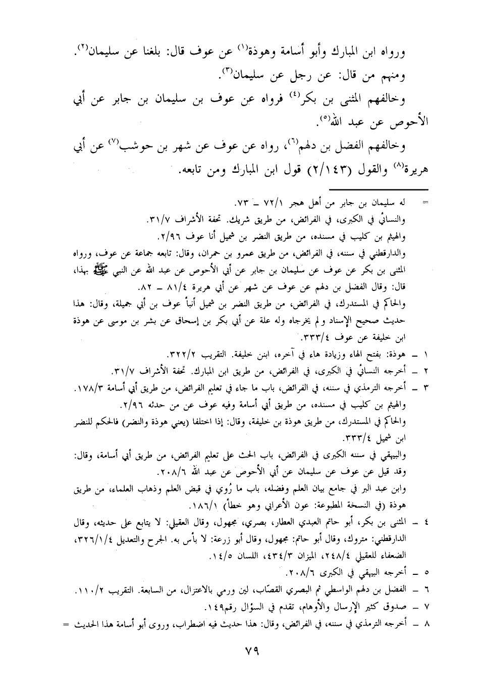 (1) تحرف في المطبوع إلى: "عوف بن سليمان بن جابر"، وصوبناه عن "السنن" للمؤلف 5/143 (4103) .