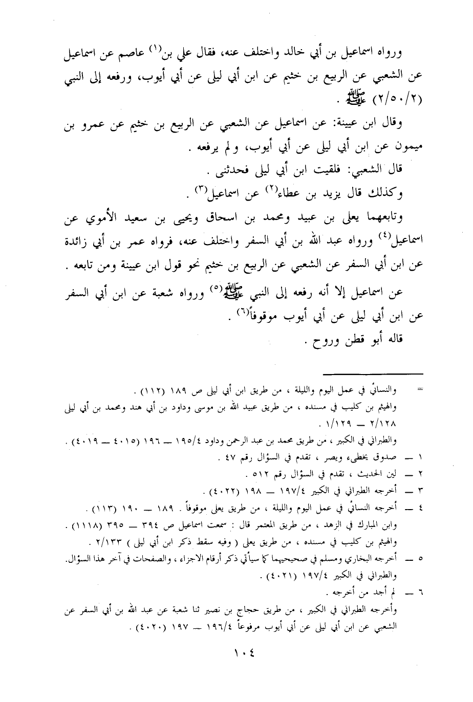 وَرَوَاهُ شُعْبَةُ، عَنِ ابْنِ أَبِي السَّفَرِ، عَنِ ابْنِ أَبِي لَيْلَى، عَنْ أَبِي أَيُّوبَ مَوْقُوفًا.