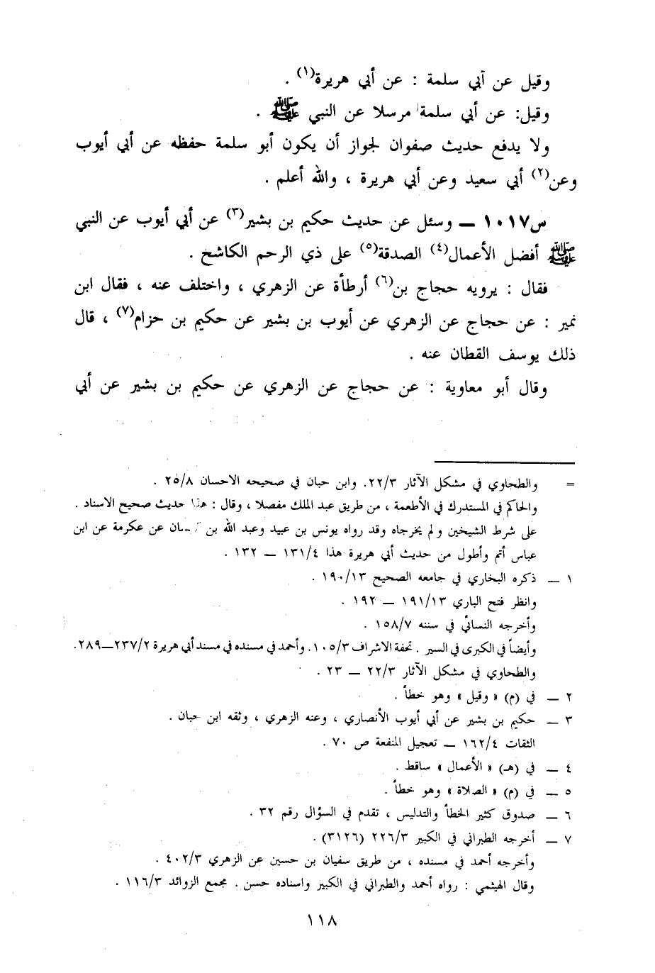 1017- وَسُئِلَ عَنْ حَدِيثِ حَكِيمِ بْنِ بَشِيرٍ، عَنْ أَبِي أَيُّوبَ، عَنِ النَّبِيِّ صَلَّى اللَّهُ عَلَيْهِ وَسَلَّمَ: أَفْضَلُ الْأَعْمَالِ الصَّدَقَةُ عَلَى ذِي الرَّحِمِ الْكَاشِحِ.