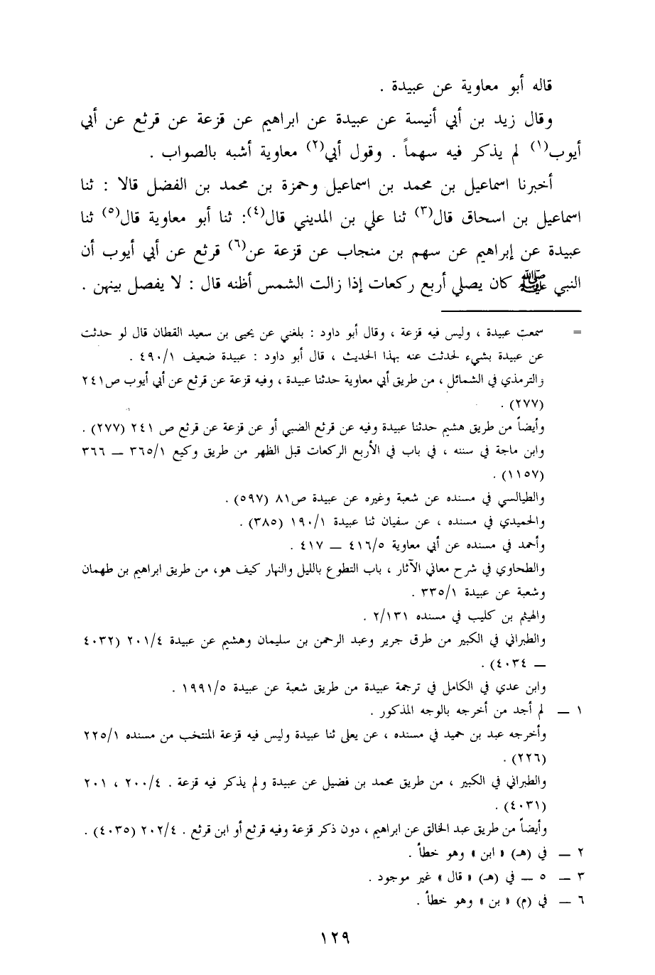 أَخْبَرَنَا إِسْمَاعِيلُ بْنُ مُحَمَّدِ بْنِ إِسْمَاعِيلَ، وَحَمْزَةُ بْنُ مُحَمَّدِ بْنِ الْفَضْلِ، قَالَا: حدثنا إسماعيل بن إسحاق، قال: حدثنا علي بن المديني، قال: حدثنا أبو معاوية، قال: حدثنا عُبَيْدَةُ، عَنْ إِبْرَاهِيمَ، عَنْ سَهْمِ بْنِ مِنْجَابٍ، عَنْ قَزْعَةَ، عَنْ قَرْثَعٍ، عَنْ أَبِي أَيُّوبَ، أن النبي صلى الله عليه وسلم كان يُصَلِّي أَرْبَعَ رَكَعَاتٍ إِذَا زَالَتِ الشَّمْسُ، أَظُنُّهُ قَالَ: لَا يَفْصِلُ بَيْنَهِنَّ.