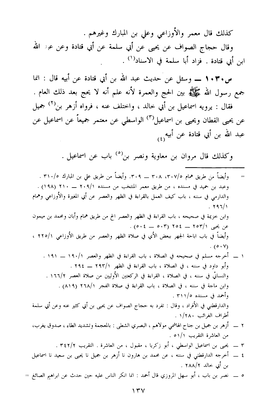 1030- وَسُئِلَ عَنْ حَدِيثِ عَبْدِ اللَّهِ بْنِ أَبِي قَتَادَةَ، عَنْ أَبِيهِ، قَالَ: إِنَّمَا جَمَعَ رَسُولُ اللَّهِ صَلَّى اللَّهُ عَلَيْهِ وَسَلَّمَ بَيْنَ الْحَجِّ وَالْعُمْرَةِ، لِأَنَّهُ عَلِمَ أَنَّهُ لَا يَحِجُّ بَعْدَ ذَلِكَ الْعَامِ.