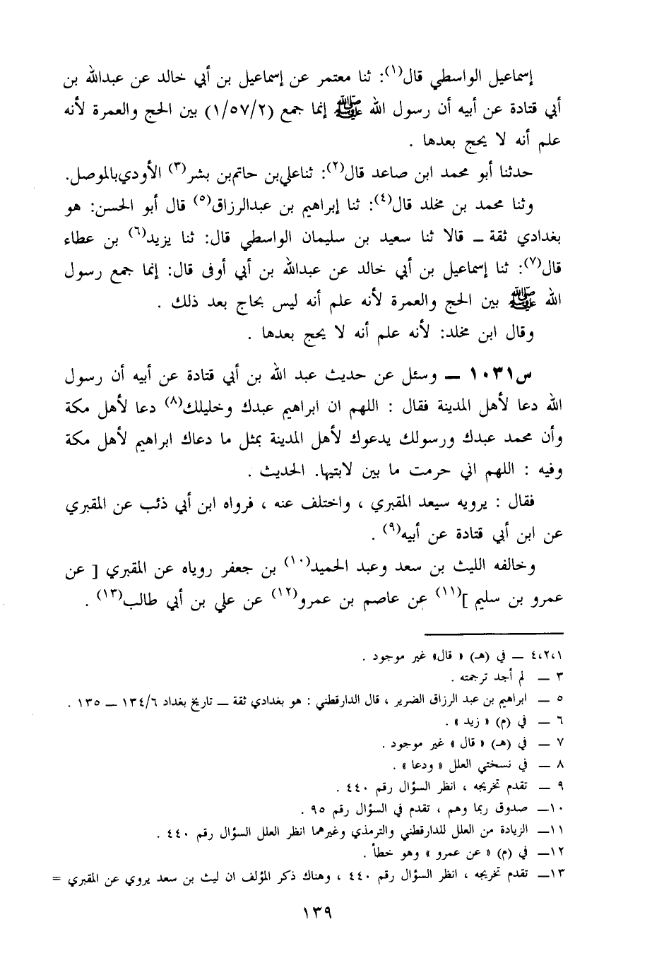 1031- وَسُئِلَ عَنْ حَدِيثِ عَبْدِ اللَّهِ بْنِ أَبِي قَتَادَةَ، عَنْ أَبِيهِ أَنَّ رَسُولَ اللَّهِ دَعَا لِأَهْلِ الْمَدِينَةِ، فَقَالَ: اللَّهُمَّ إِنَّ إِبْرَاهِيمَ عَبْدُكَ وَخَلِيلُكَ دَعَا لِأَهْلِ مَكَّةَ، وَأَنَّ مُحَمَّدًا عَبْدُكَ وَرَسُولُكَ يَدْعُوكَ لِأَهْلِ الْمَدِينَةِ بِمِثْلِ مَا دَعَاكَ إِبْرَاهِيمُ لِأَهْلِ مَكَّةَ، وَفِيهِ: اللَّهُمَّ إِنِّي حَرَّمْتُ مَا بَيْنَ لَابَتَيْهَا.... الْحَدِيثَ.