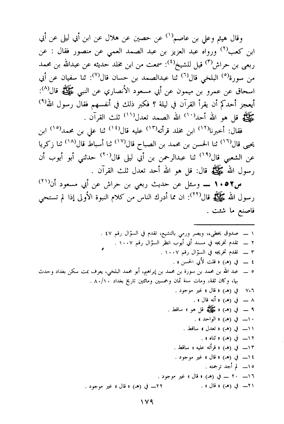 1052- وَسُئِلَ عَنْ حَدِيثِ رِبْعِيِّ بْنِ حِرَاشٍ، عَنْ أَبِي مَسْعُودٍ، أَنّ رَسُولَ اللَّهِ صَلَّى اللَّهُ عَلَيْهِ وَسَلَّمَ، قَالَ: إِنَّ مِمَّا أَدْرَكَ النَّاسُ من كلام النبوة الأولى إذا لم تستح، فَاصْنَعْ مَا شِئْتَ.