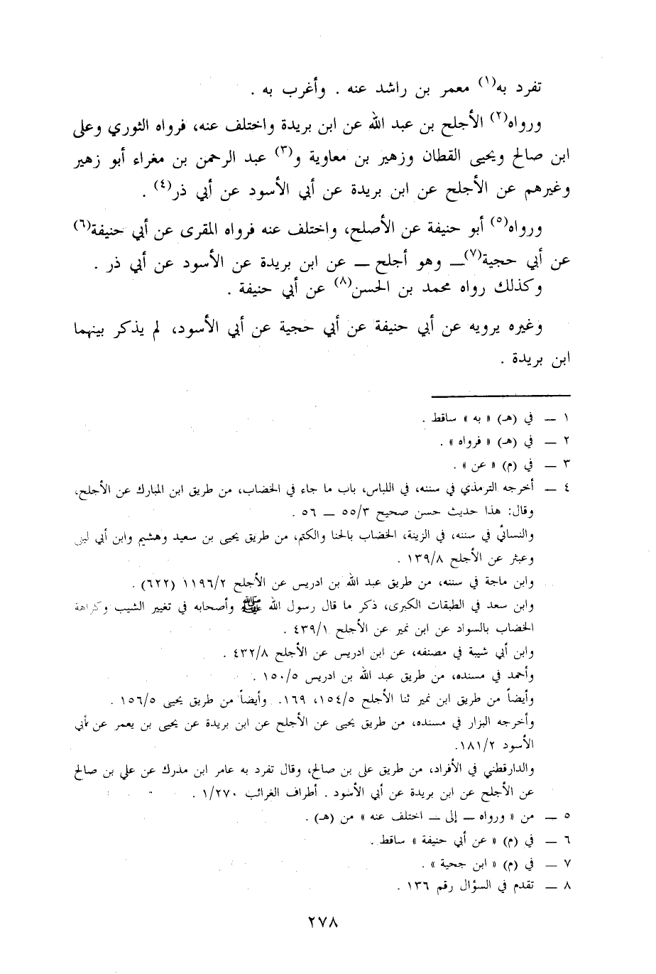 فَرَوَاهُ الثَّوْرِيُّ، وَعَلِيُّ بْنُ صَالِحٍ، وَيَحْيَى الْقَطَّانُ، وَزُهَيْرُ بْنُ مُعَاوِيَةَ، وَعَبْدُ الرَّحْمَنِ بْنُ مِغْرَاءَ أَبُو زُهَيْرٍ، وَغَيْرُهُمْ، عَنِ الْأَجْلَحِ، عَنِ ابْنِ بُرَيْدَةَ، عَنْ أَبِي الْأَسْوَدِ، عَنْ أَبِي ذَرٍّ.